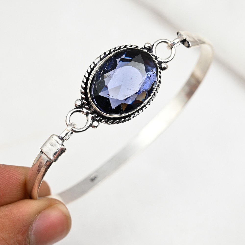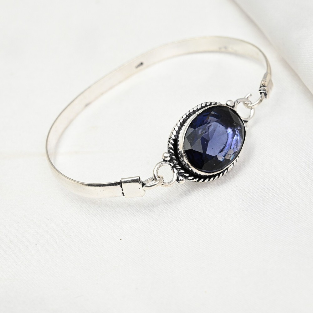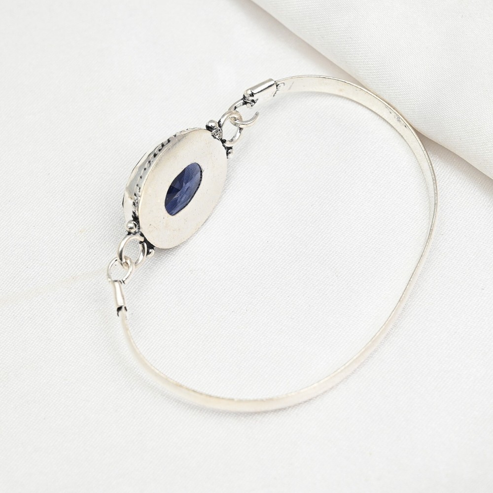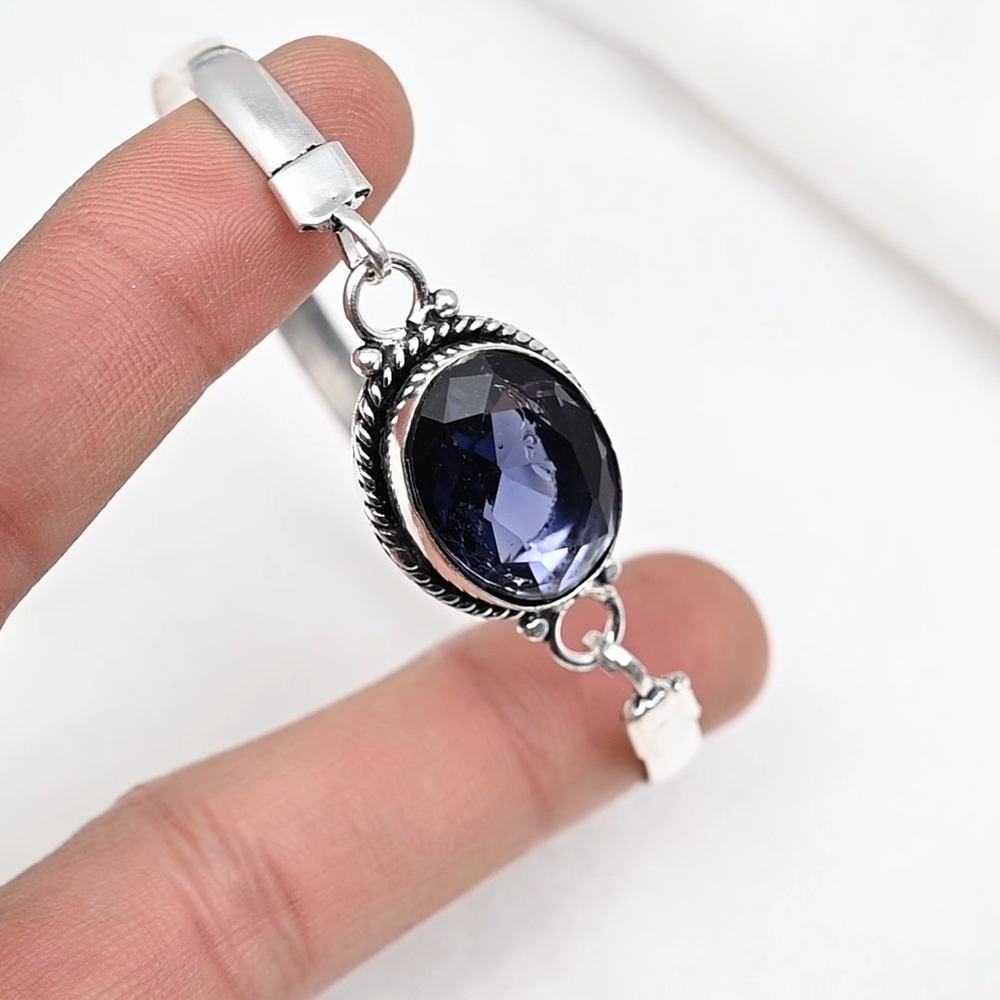 Certification:N/AMaterial:GemstoneMetal:Sterling SilverDiamond Color Grade:N/AGemstone Clarity Grade:Eye CleanColor:SilverBrand:HandmadeMetal Purity:925Country of Origin:IndiaItem Length:AdjustableDiamond Clarity Grade:N/ACharm Type:Same As PictureMain Stone Width:N/AMain Stone Depth:N/AClosure:AdjustableType:BraceletMain Stone Creation:Lab-CreatedColored Diamond Intensity:N/ASetting Style:BezelBase Metal:Sterling SilverNumber of Gemstones:1Handmade:YesNumber of Diamonds:N/ACollection:HandmadeMain Stone:IoliteMain Stone Length:N/ATheme:Beauty, Bohemian, Ethnic, Halloween, LoveCut Grade:ExcellentTotal Carat Weight:10 carat and aboveCountry/Region of Manufacture:IndiaFeatures:AdjustableMain Stone Treatment:Not EnhancedMain Stone Shape:OvalOccasion:Anniversary, Birthday, Christmas, Engagement, Mother's Day, Valentine's Day, WeddingChain Type:N/ASecondary Stone:N/AMain Stone Color:BlueStyle:CuffShape:Same As Picture