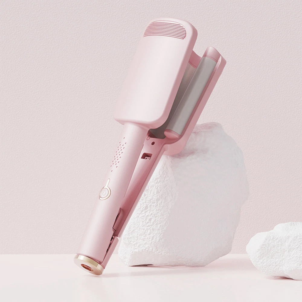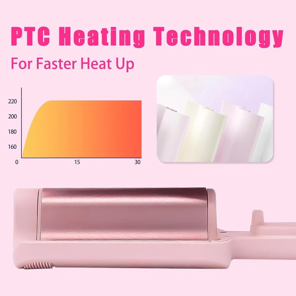Waver Curling Iron Hair Crimper, Ionic Deep Waver Hair Curler Tool, Beach Waver Curling Wand, 2 in 1 straightener and curler with Ceramic 3 Barrel for Women, Dual Voltage, Anti-Scald, 1.25 Inch (Pink) About this item 【Instant Beachy Waves】Achieve stunning beachy waves effortlessly with our hair crimper. With just one clamp, you can say goodbye to hours of practice and hello to beautiful mermaid-inspired waves every day. 【Enhanced Safety Features】This waver hair tool is designed with a full-wrap insulation design, ensuring that there are no exposed barrels that could cause burns. You can create mesmerizing waves while keeping your fingers and neck safe from any potential harm. Dive into worry-free hair styling with our advanced safety features. 【Voluminous and Luxurious Waves】The 1.25-inch barrel of our Beach Waver Curling Wand creates larger and more luxuriant beach waves. Thanks to the incorporation of advanced dual-sided heating technology, these waves retain their shape and endurance for extended periods, giving you voluminous hair all day long. 【Adjustable Temperatures and Safe Design】Our hair curler tool is suitable for all hair types and comes with 4 adjustable temperature settings. While the auto shut off feature ensures safety by automatically turning off the curling iron after 30 minutes of inactivity. The silicone anti-scald design on the top prevents burning fingers, providing a comfortable and safe user experience. 【Damage-Free Waves】Our curling iron is designed to make your waves silky and frizz-free. The tourmaline ceramic coating is infused with nourishing essence and contains 80 million negative ions to help neutralize static electricity, ensuring that every wave is processed and healthy, leaving you with gorgeous, damage-free hair. Product Description Easy Storage Push it down to open the panel. Push it up to lock the panel. You can lock it when you don't need it, reducing storage space in suitcase. 3 Barrel The 3 Barrel shaped design can help you save styling time, and you can get 3 rolls with one press. Curls look more natural. Double Moisturizing Negative ions can help you deeply care for your hair, protect your cuticles, reduce heating damage and decrese frizz. On Jul 24, 2025 at 10:49:08 PDT, seller added the following information: