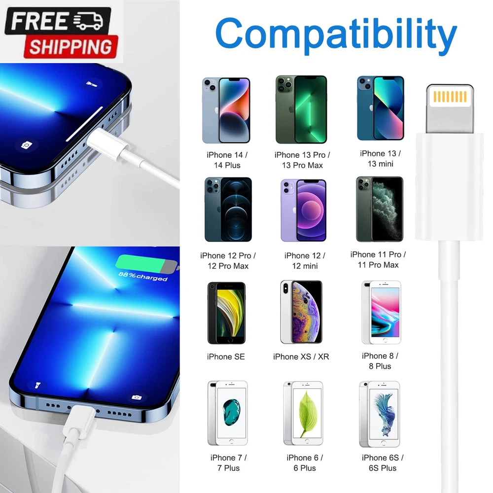 Store New Arrivals Add to Favorite View Feedback Contact Iphone Charger Cord [Mfi Certified] 6Ft 4Pack,Original USB to Lightning Cable Fast Charging for Iphone 14/13/12/11 Pro/11/Xs Max/Xr/8/7/6S Plus,Ipad Pro/Air/Mini,Ipod Touch -White Description Color White Cable Type usb a to lightning Connector Type Lightning Compatible Devices for iPhone 14/13/12/11 Pro/11/XS MAX/XR/8/7/6s Plus,iPad Pro/Air/Mini,iPod Touch Special Feature fast charging Package Dimensions 10 x 7.6 x 0.43 inches; 4.97 ounces Size 4pack 6ft ABOUT US We offer the best prices around on high quality products. Our E-store includes media such as books, movies, music and games while offering electronics, toys, sporting apparel, clothing, tools, general home, garden items and more. SHIPPING We are always working hard to ensure your package arrives as soon as possible. Please understand that some factors like weather, high postal traffic, and the performance of shipping companies are outside of our control. We offer free shipping to the lower 48 states and ship within 2 business days of payment, usually sooner. We do not accept P.O. Boxes. Please provide a physical address. For shipping outside of the continental USA, we only use eBay's Global Shipping Program.The item is shipped to KY and then sent to the rest of the world. International customers are responsible for all duties and taxes. Continue to check out in order to calculate costs for shipping the item to your country. Messages regarding eBay's Global Shipping Program MUST be directed at eBay EXCLUSIVELY. RETURNS We offer a 30-Day Return Policy on items which you are not completely satisfied with. You have the option for a full-refund or an exchange of the item. No returns are available on items shipped outside of the USA. PAYMENT We accept PayPal. CONTACT US This page content is yet to come Please ad us to your favorite seller and visit again later Thank You CUSTOMER SATISFACTION We try our very best to make sure every customer is completely satisfied. If there's a problem, message us! We're happy to help. WE ACCEPT https://www.ebay.com/str/ysrastore