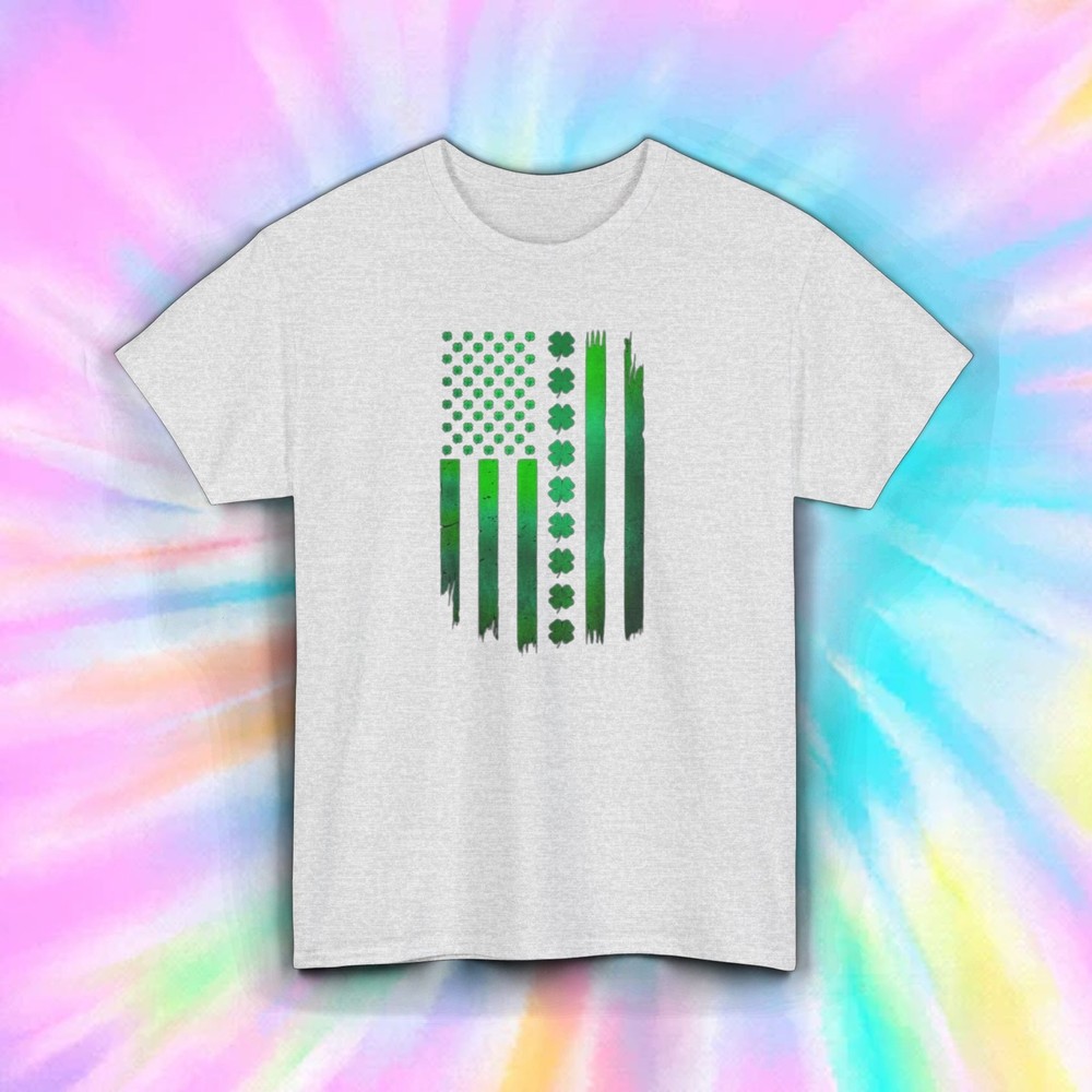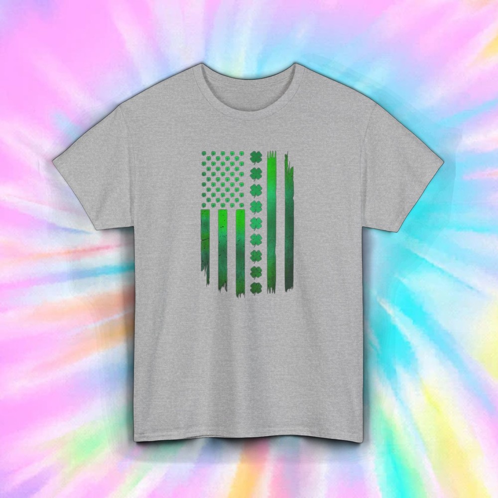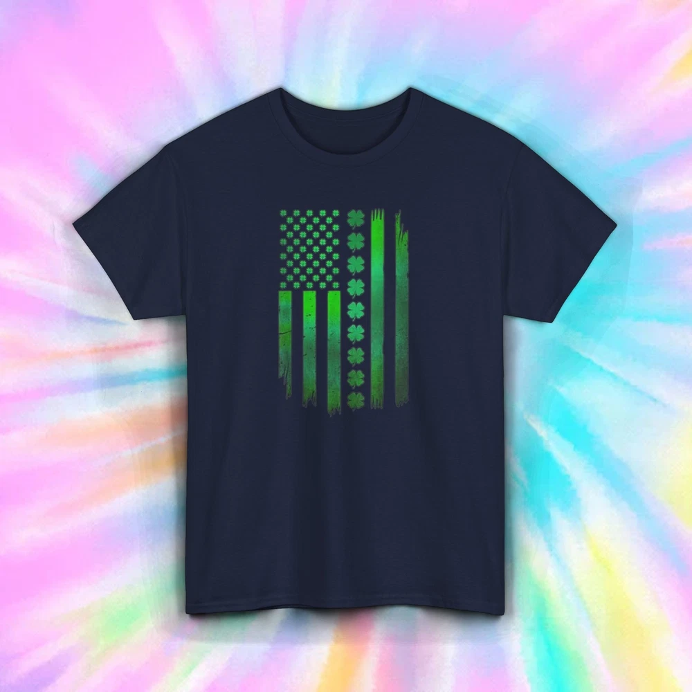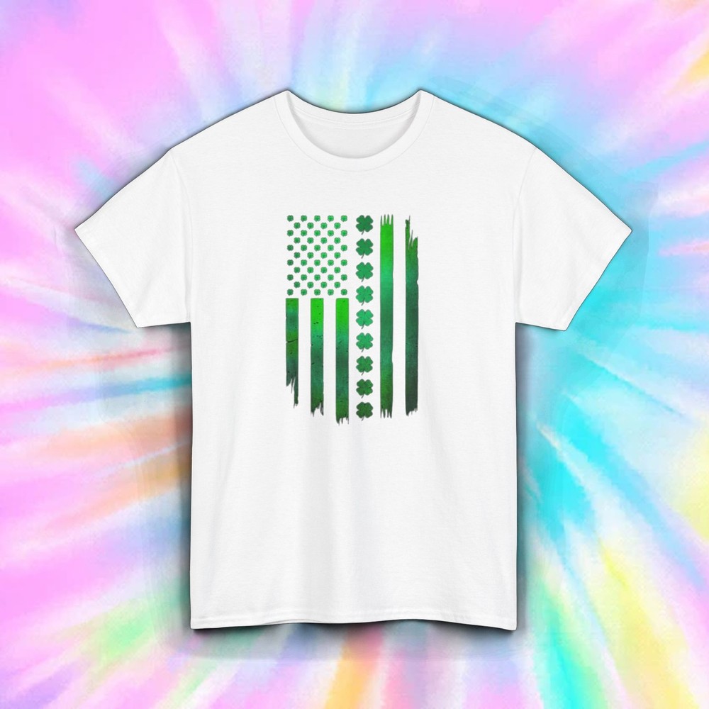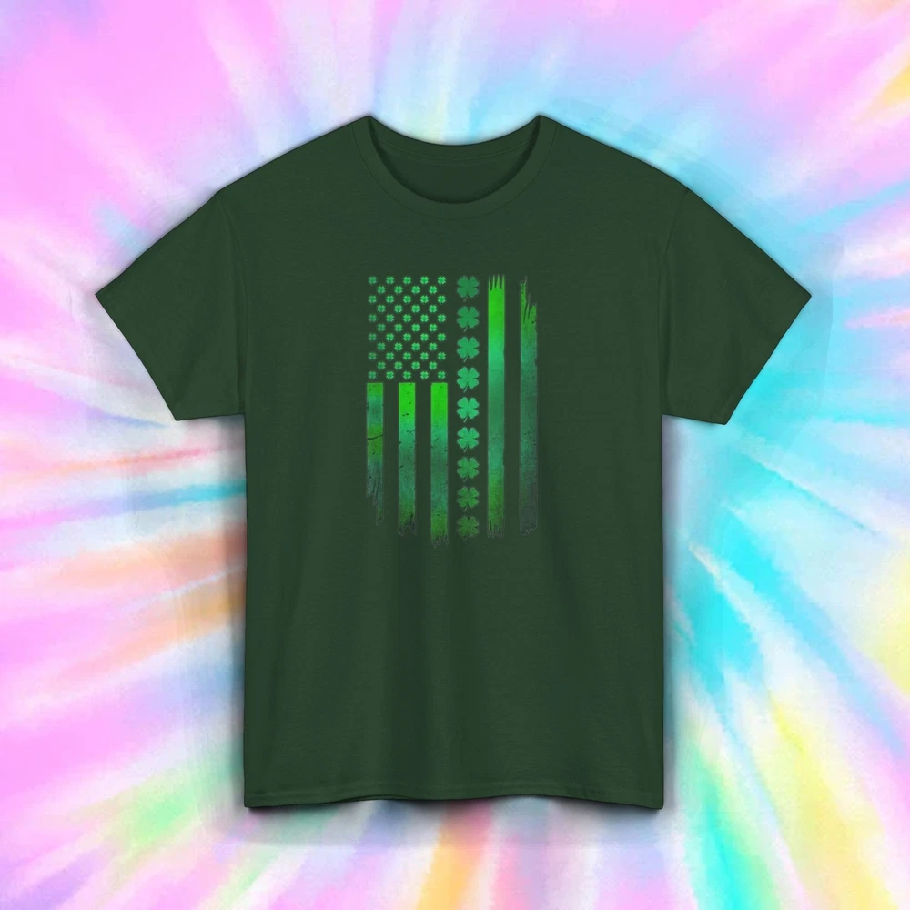 Shamrock American Flag Stripes T-Shirt Show off your Irish pride with our "Shamrock American Flag Stripes" T-Shirt. This design features the American flag reimagined with green shamrocks and stripes, perfect for celebrating St. Patrick's Day or any day you want to express your Irish roots. Features: Material: Made from 100% premium cotton for a soft and breathable feel. Fit: Unisex classic fit, true to size for comfortable wear. Design: American flag with green shamrocks and stripes. Label: Tear-away label for easy customization and added comfort. Ideal For: St. Patrick's Day festivities Irish-American celebrations Everyday wear Shipping Details: Items are dispatched within 1-3 business days. Please note that holidays may extend this processing time, so we recommend ordering early. Enjoy free economy shipping on all orders! Expedited shipping options are available starting at $1. Returns Policy: We accept returns for items due to buyer's change of mind or errors; however, the buyer is responsible for the cost of return shipping. For defective items or those with issues, please provide documentation (photos or descriptions of the problem), and we will gladly offer a refund or replacement. Order your "Shamrock American Flag Stripes" T-Shirt today and embrace your Irish heritage.