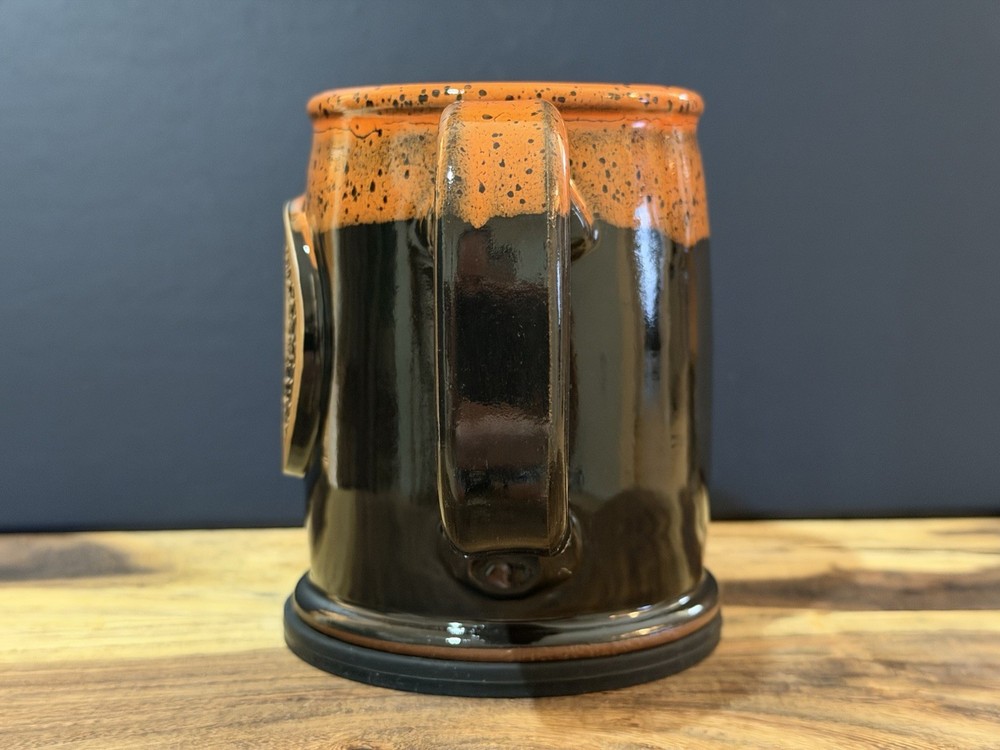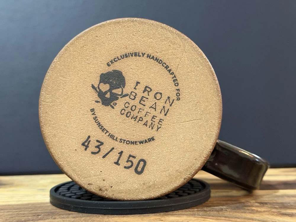 The Iron Bean Coffee Co. "Hallowed To The Holy" (Limited Edition) Mug is a *RARE* unique and collectible piece number (43/150), perfect for any coffee or tea lover. On the medallion, Bean plays the grinning bone king—all swagger and midnight energy—while Nori stands beside him as the stitched-together muse, the calm in the chaos. It’s a love story held together with thread, steam, and stubborn optimism… in a season that always feels slightly haunted. This mug features an ember/midnight color scheme and has a capacity of 12-16 oz, is ideal for all occasions, whether for enjoying hot or cold beverage’s. Handmade by Sunset Hill Stoneware specifically for Iron Bean Coffee Co, this mug is individually numbered and limited to a 1/500) production run and is currently (OUT OF STOCK) making this unique piece a must-have addition to any kitchen or home collection. Item Specifics: -This is a *BRAND NEW*-UNUSED-PIECE* with NO visible signs of ware, scuffs or scratches. -Suitable for both hot/cold beverages and is microwave/dishwasher safe. -Proudly made in the U.S.A. Sunset Hill Stoneware. -The mug *PICTURED* is the *EXACT MUG YOU WILL RECEIVE* NIB