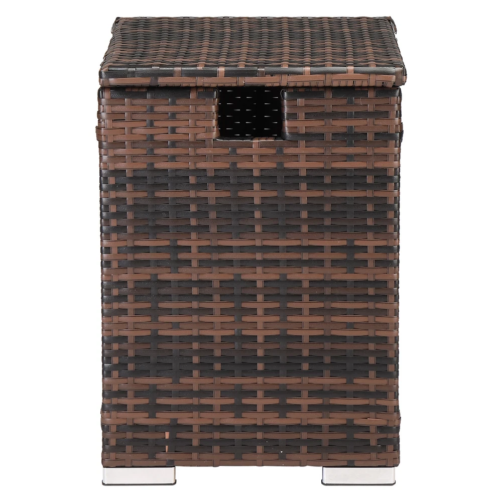Iron Frame Gas Bottle Storage Rattan Side Table Brown Gradient 40x40x57cm