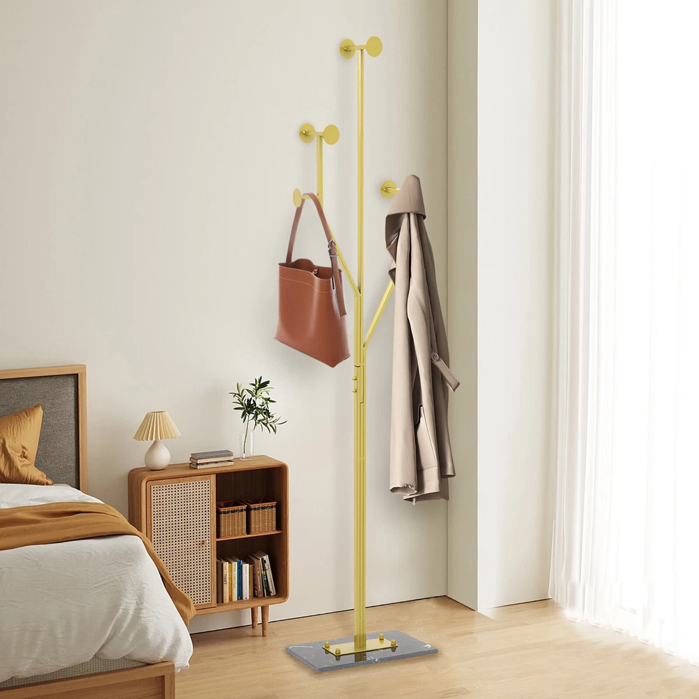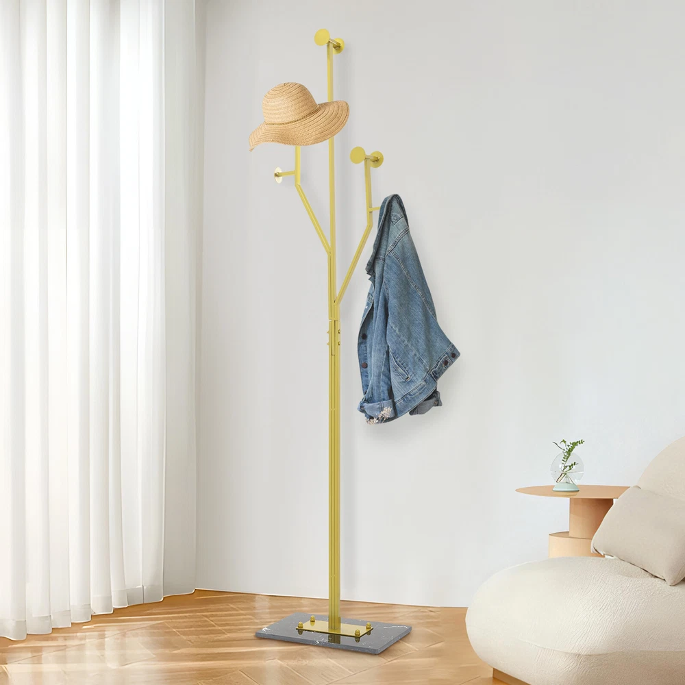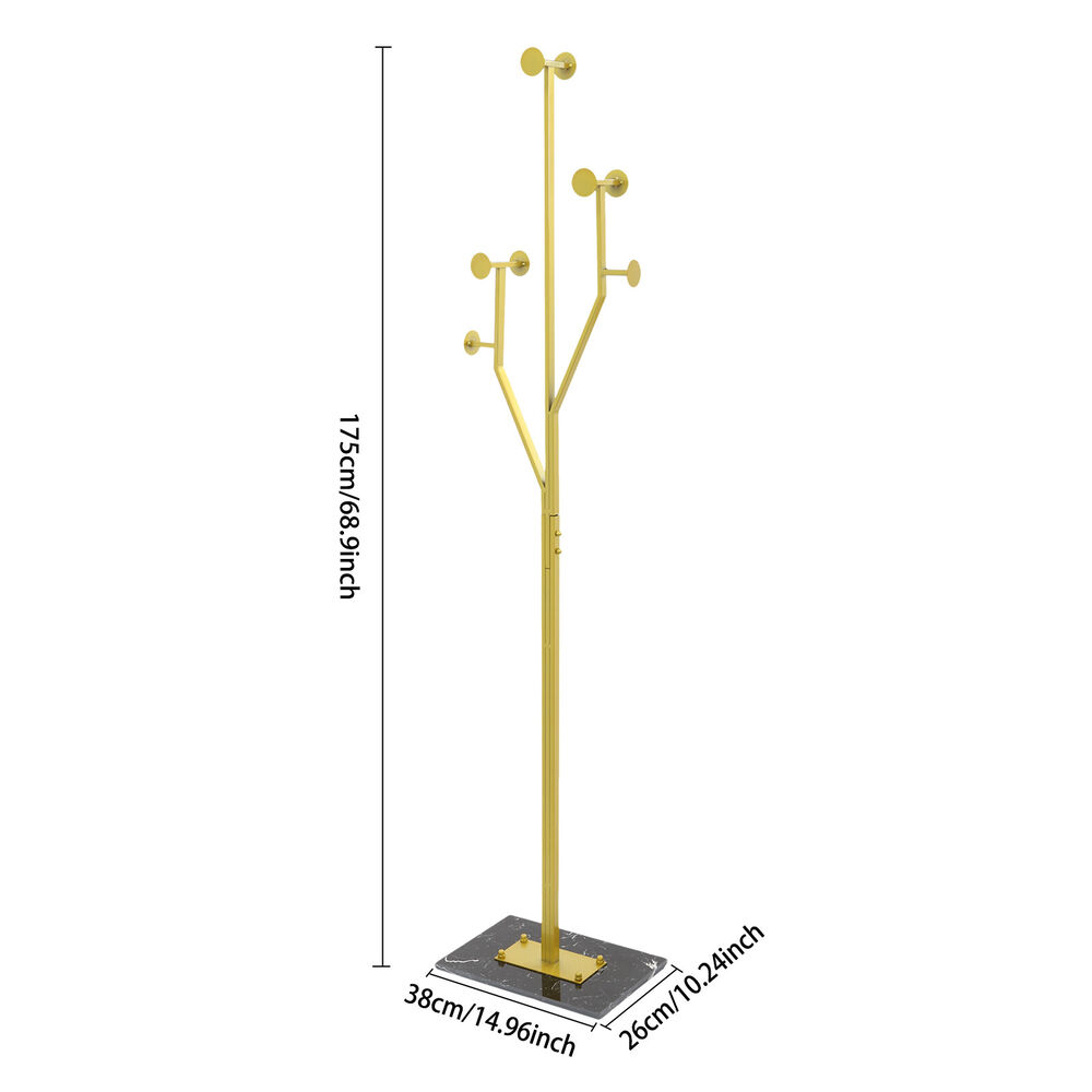 Specification Color: Gold+Black Style: Modern Material: Iron, Marble, Rubber Process: Polishing, High-temperature Baking Paint Assembly Required: Yes Mounting Type: Free Standing Load Capacity: 15-20kg/33.07-44.09 lbs Product Size: 38*26*175cm/14.96*10.24*68.9in Package Size: 100*39*18cm/39.37*15.35*7.09in Gross Weight: 8.34kg/18.39 lbs Net Weight: 7.92kg/17.46 lbs Package Included 1* Coat Rack 6* Foot Pads Other Accessories for Assembly Coat Rack Iron Hat Bag Tree Free Standing Clothes Hanger Holder Hooks Organizer Key Features Premium Materials: It is mainly made of premium iron and marble, and the surface is treated with high-temperature baking paint and polishing technology, which is scratch-resistant, rust-proof, sturdy, not easy to deform, and can withstand the test of time. High Load-bearing Capacity: The premium material, heavy-duty marble base, and stable structure allow it to hold up to 33.07-44.09 lbs , meeting the daily clothing hanging needs. Saving Space: It can save space because of the full utilization of vertical space and the small footprint( 14.96*10.24 in ) of the base. Storage Assistant: It adopts a tree branch-shaped design each branch has several circular hooks, providing multiple branches to give you enough space to hang clothes, bags, hats, scarves, etc., meeting your daily storage needs and making your home more tidy and beautiful. Aesthetic Appearance: The smooth lines, elegant gold, and natural marble patterns make it well integrated into various styles of home decor, enhancing the overall texture and style of the home. Simple Installation : You can easily install it without too much effort and time because of its simple structure and complete accessories . Easy to Clean: It has a smooth surface and an open structure, so you only need to wipe the dust or residue with a towel. Ideal Gift: With good performance and a modern appearance, it can be used as an ideal housewarming gift for parents, friends, and lovers so that they can also have a good clothing organization assistant. Good Customer Service: We aim to provide quality products and services. If you have problems, please feel free to contact us. We will reply and solve the problem for you as soon as possible. Details Rounded Edge: The edges of the product are designed with rounded corners , better protecting your clothes and hands. Rubber Pads: They can effectively enhance the stability of the product while protecting the floor from scratches. Circular Hook: It can prevent clothes hangers or bags from slipping, prevent clothes from getting dirty, and improve the stability of hanging. Application It is used in bedrooms, living rooms, hallways, foyers, offices, and small apartments to hang items such as hats, scarves, bags, and clothes. Specification Color: Gold+Black Style: Modern Material: Iron, Marble, Rubber Process: Polishing, High-temperature Baking Paint Assembly Required: Yes Mounting Type: Free Standing Load Capacity: 15-20kg/33.07-44.09 lbs Product Size: 38*26*175cm/14.96*10.24*68.9in Package Size: 100*39*18cm/39.37*15.35*7.09in Gross Weight: 8.34kg/18.39 lbs Net Weight: 7.92kg/17.46 lbs Package Included 1* Coat Rack 6* Foot Pads Other Accessories for Assembly Notes Please note that items such as suits and bags are not included in this product. Please allow the slight color difference caused by the shooting light and 1-3 cm error due to manual measurement, and make sure you do not mind before ordering. Payment Delivery details Terms of sales About us Contact us Payment We accept ebay payment 。 Fees such as import duties, taxes are not included in the item price or shipping costs. These charges are the buyer's responsibility. Delivery details Shipping: 2-9 working days to: USA Terms of sales We maintain high standards of excellence and strive for hundred percent customer satisfaction. Feedback is very important to us. We hope that you contact us immediately before you give neutral or negative feedback, so that we can address your concerns. It is impossible to address issues if we do not know about them! About us Your satis faction is our ultimate goal. We work hard to earn your trust and future business. Our certified technicians have tested each item before shipping. The unit comes with 1 year limited warranty on all manufacturing defects. a) If you receive a defective item, you may return it or ask for a discount. Please contact us within 14 days after you receive the package. b) What you returned must be intact and in its original packaging as re? u. Customer is responsible for shipping costs of the returned item. c) We will cover the cost of shipping back t with the shipping rate indicated in the registration page. We will send you a new unit or refund the full payment you paid. Thank you. Contact us Business Hour Business Hour: Monday To Friday: 8:30 AM to 5:00 PM (Beijing China time) Due to time zones, our reply to your questions may not be immediately. But within above working time, we will reply your email within 24 hours. If it's non-workdays, please kindly be patient and wait till Monday. Please contact us with ebay message. Please feel free to contact us if you have any questions. Monday To Friday: 8:30 AM to 5:00 PM (Beijing China time) Due to time zones, our reply to your questions may not be immediately. But within above working time, we will reply your email within 24 hours. If it's non-workdays, please kindly be patient and wait till Monday. Please contact us with ebay message. Please feel free to contact us if you have any questions. On Aug 12, 2025 at 19:41:55 PDT, seller added the following information: