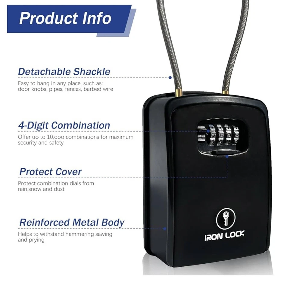 Secure your keys with the Iron Lock® XXL Key Lock Box, designed for both portable and wall-mounted convenience. This durable lock box comes equipped with a removable cable shackle, ensuring that your keys are protected and accessible whenever you need them. Ideal for outdoor use, it is perfect for businesses and industrial settings where security is a top priority. The Iron Lock® Key Lock Box features a sturdy, combination lock mechanism, providing an extra layer of protection against unauthorized access. Its spacious interior accommodates multiple keys, ensuring that you always have a backup on hand. With its straightforward mounting option, this lock box can be easily installed in any facility maintenance and safety environment.