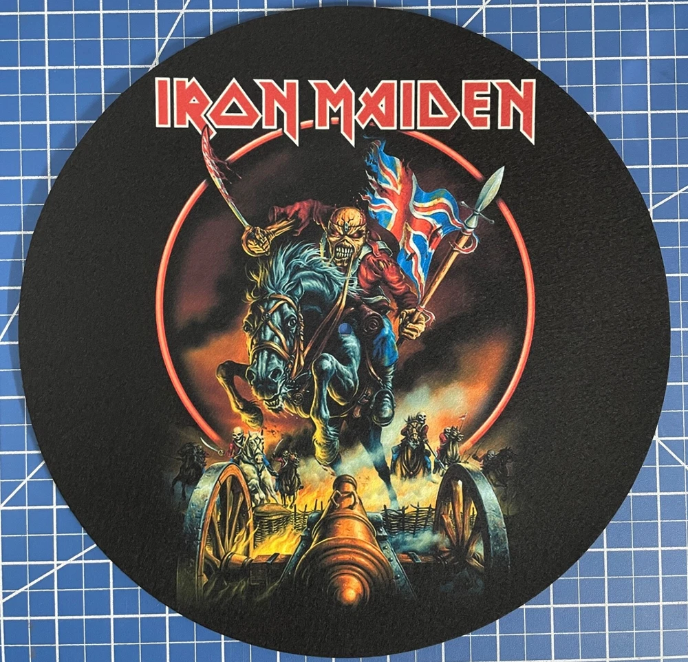 Enhance your vinyl records collection with this Iron Maiden slipmat from Slipmat King. Measuring 11.75 inches in diameter and compatible with any 12-inch turntable, this multicolor slipmat is made of high-quality polyester material, ensuring superior durability and longevity. Designed for DJs and music enthusiasts, this slipmat is perfect for protecting your vinyl records while playing them. Its 1/16 inch thickness prevents any unwanted vibrations and ensures accurate tracking of the music. Made in the United States, this slipmat is a must-have for any Iron Maiden fan and a great addition to your DJ equipment.