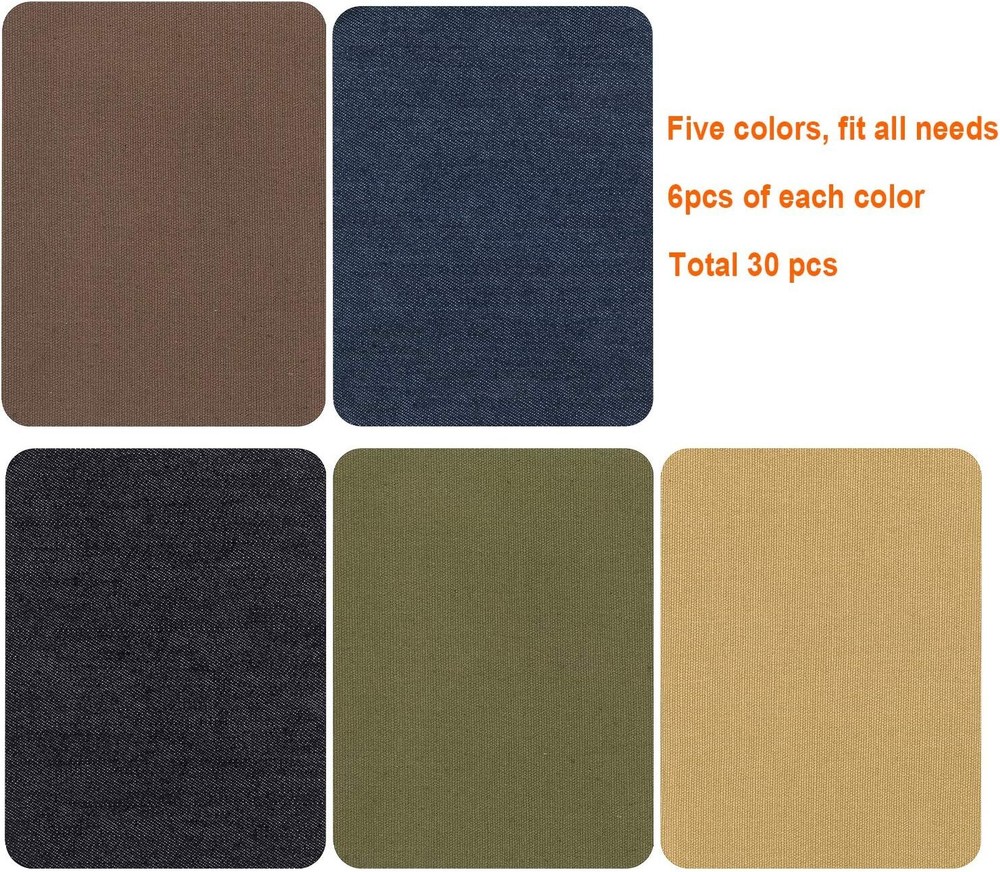 Description Package contains 30 pcs of 4.9 x 3.7 inch iron on patches. Each color 6pcs. 5 different colors denim patches will fit with almost every kind of jeans. Black, coffee, navy, brown and dark green. Iron-On Patches are ideal for mending, reinforcing and decorating many different applications. Easy to applied on fabric: only few minutes will take to repair or decorate your clothes. Perfect for repair and decoration: Prolong the life of your favorite clothes or breathe into the old new life by decorating it Awpeye Iron on patches are ideal for repair and decoration work pants and jeans, uniform shirts, skirts and jackets. Easy to repair your clothes only a few minutes. If you can operate an iron, you can make quality repairs, the iron on repair kit require not messy adhesives and no sewing, patches on to your pants where is ripped and get that backed. While most iron-on denim jean patches on the market are stiff and tend to start peeling off after being applied, our denim patches apply in seconds and last an incredible number of wash and dry cycles. It was washable, allow for machine wash and tumble dry, and they last long. PACKAGE INCLUDES: 6PCS Navy Iron On Patches 6PCS Black Iron On Patches 6PCS Coffee Iron On Patches 6PCS Brown Iron On Patches 6PCS Dark Green Iron On Patches Item Size: 4.9 x 3.7 Inch NOTE: Do not iron with steam. Not recommended for use on nylon, or rayon. The patches are ironed on outside of the jeans not inside.