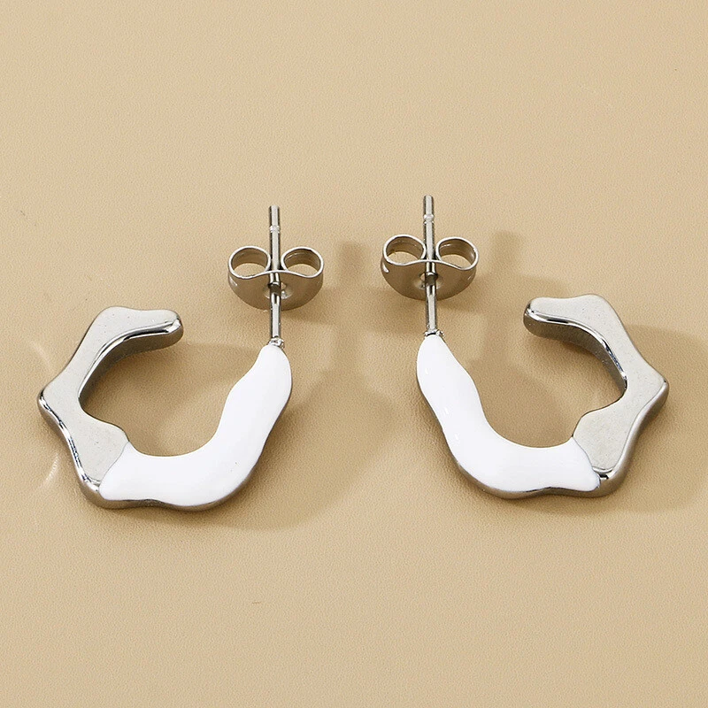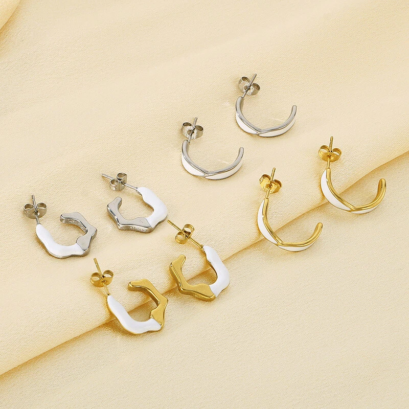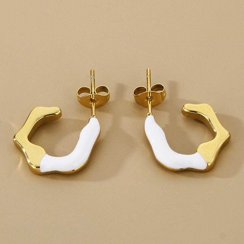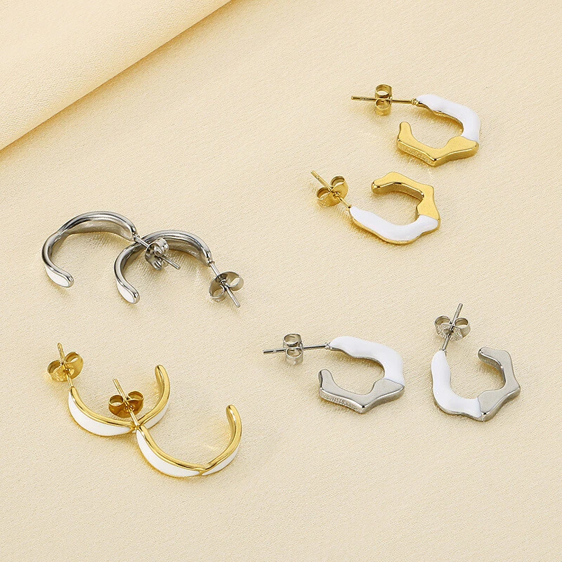Irregular C-shaped stainless steel earrings 14k gold earrings titanium steel