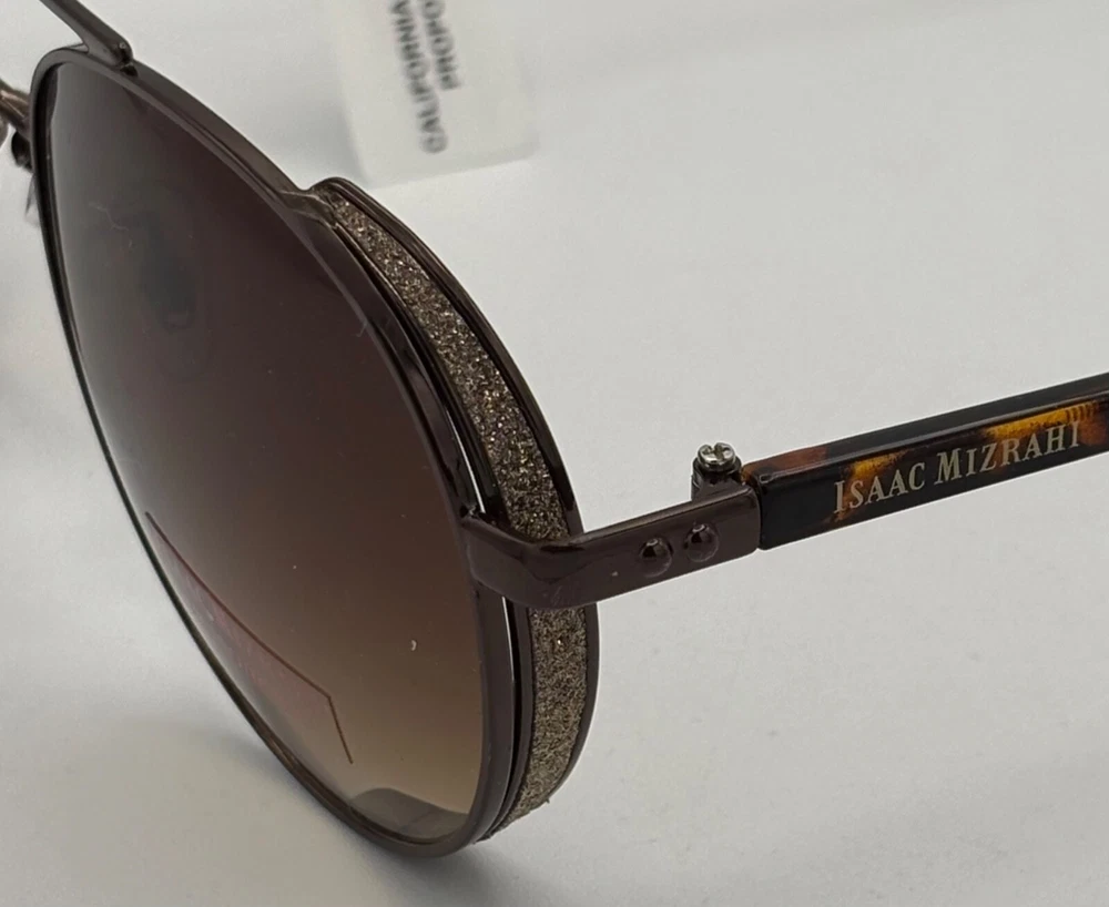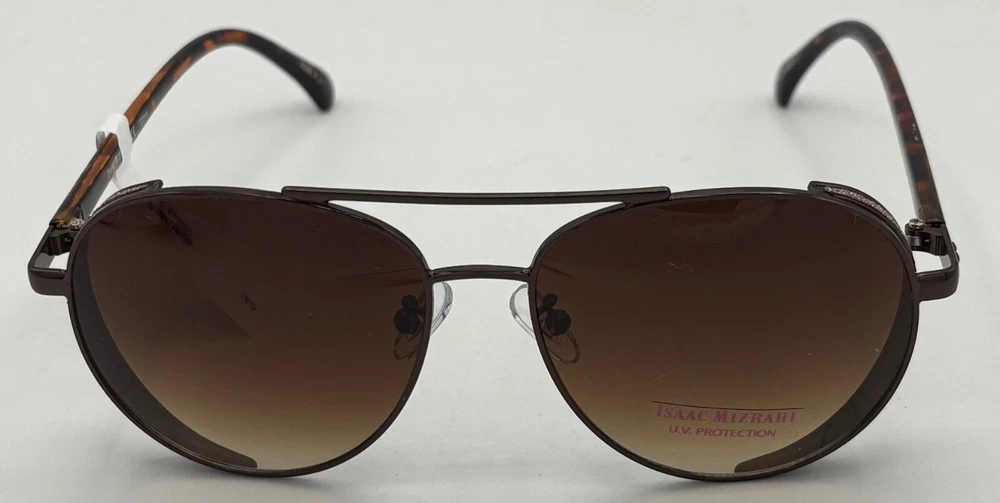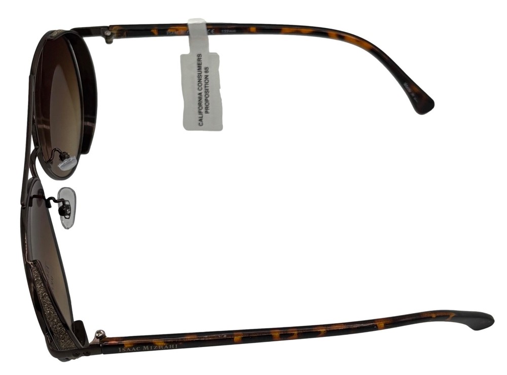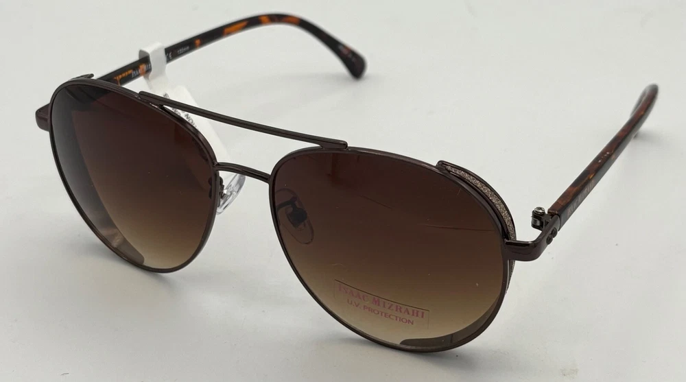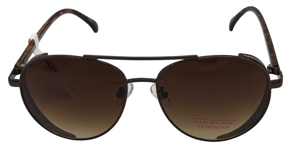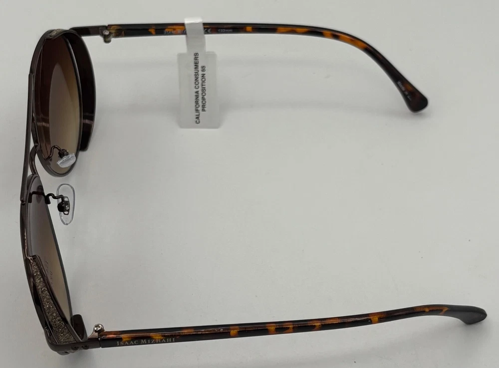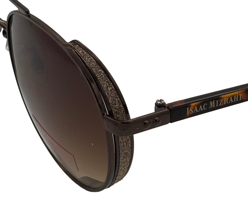 The Isaac Mizrahi Women's Brown Metal Aviator Sunglasses (IM31257 BR) feature a stylish aviator design with a brown frame and gradient brown lenses. These sunglasses offer 100% UV protection, making them both fashionable and functional for protecting your eyes from harmful UV rays. The metal frame gives them a sleek and modern look, perfect for women looking to add a touch of sophistication to their outfit. Size: 58. 16. 132, Height 52mm, You Pay: $24.99