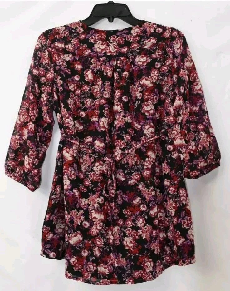 This beautiful Isabel Maternity blouse features a stunning floral print, perfect for any occasion. The blouse has 3/4 sleeves and a V-neckline, with a pullover closure for ease of wear. It is made of lightweight, breathable polyester material, perfect for all seasons. The blouse is lined and has an elastic waist, making it comfortable and stretchy. It is suitable for travel, party/cocktail, casual, workwear, and business occasions. The blouse is machine washable and is available in size XS. This classic fit blouse is perfect for women, with a collarless design and multicolor options.