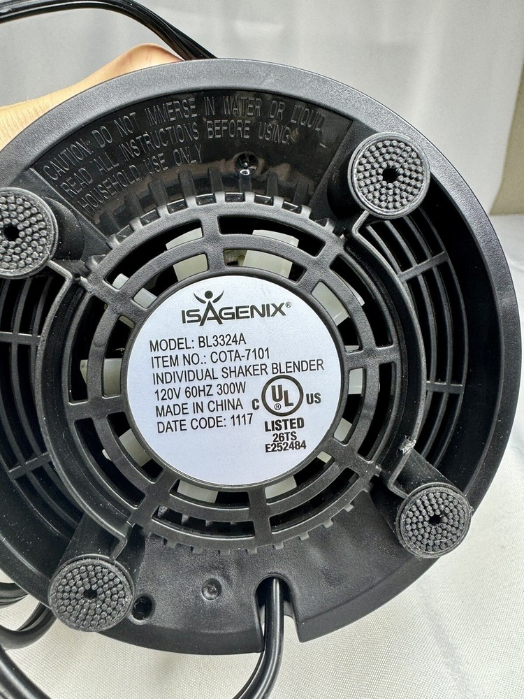 Power Source:ElectricColor:BlackMPN:BL3324AItem Width:5 inPower:300 WModel:Personal Blendergtin13:Does not applyItem Height:6.5 inComponents Included:BaseUPC:Does not applyBrand:IsagenixAppliance Uses:Frozen Drink, Fruit, Juice, SmoothieVoltage:120 VNumber of Items:1Type:Personal BlendersNumber of Settings/Programs:1Country/Region of Manufacture:China