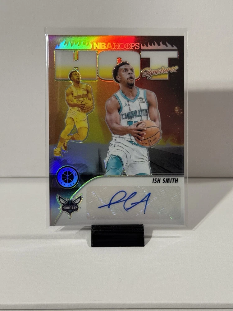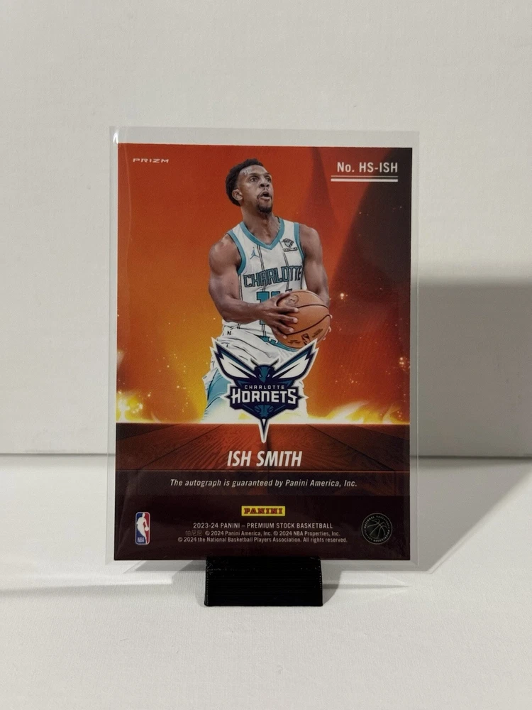 Capture a piece of basketball history with the Ish Smith 2023-24 Premium Stock Basketball Hot Signatures Prizm card. This collector's gem from the 2023-24 Panini NBA Hoops Premium Stock set features Ish Smith of the Charlotte Hornets, showcasing his autograph alongside a stunning Prizm parallel design. The card, numbered HS-ISH, is a must-have for fans and collectors alike, representing not only Smith's skill on the court but also the excitement of the NBA. With its premium stock quality and the prestige of the Hot Signatures series, this card is a standout addition to any collection.