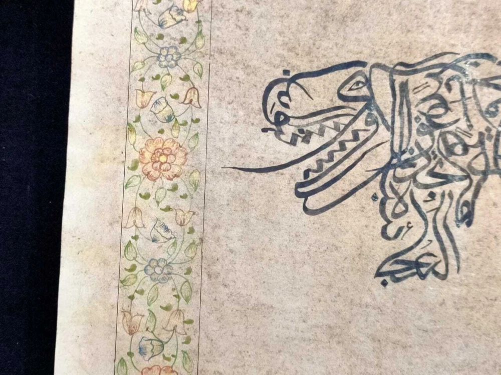 The Zoomorphic Islamic calligraphy Art form is a mode of script metamorphosing into living forms which are also readable letters and of using scripts to delineate such forms. The flexibility of the Arabic letters allow themselves to be bent and extended in a way which is impossible with other alphabets. The practice established itself only relatively late in Islamic art and developed in ottoman Turkey, India and Qajar Iran around 1458. The art presented depicts an Dinosaurs - Naad -e- Ali written with a remarkable symmetry in the composition. A great addition for your vintage art and antique lovers. Best for your collection, home décor or personal gifting. Kindly visit our store for more vintage and antique items. We update daily new listings. Your Feedback is important to us, do leave us positive feedback so we can provide buyer the best services. Any problem and query related to item -please contact us, customer satisfaction is our first priority. We are unable to take any responsibility for any custom delay or tax, reason is because transit time is highly depended and provided by postal service(except weekend and holidays).The bidder/buyer(s) is solely responsible for Import Duties and Custom fees. Happy Shopping with eBay.