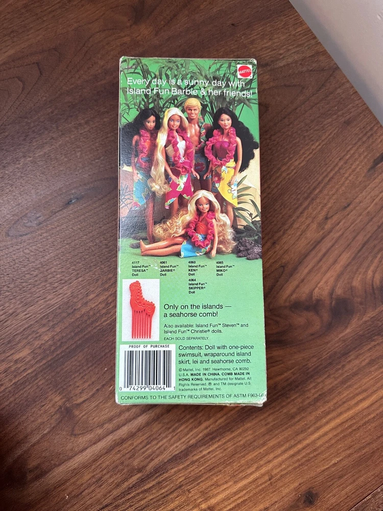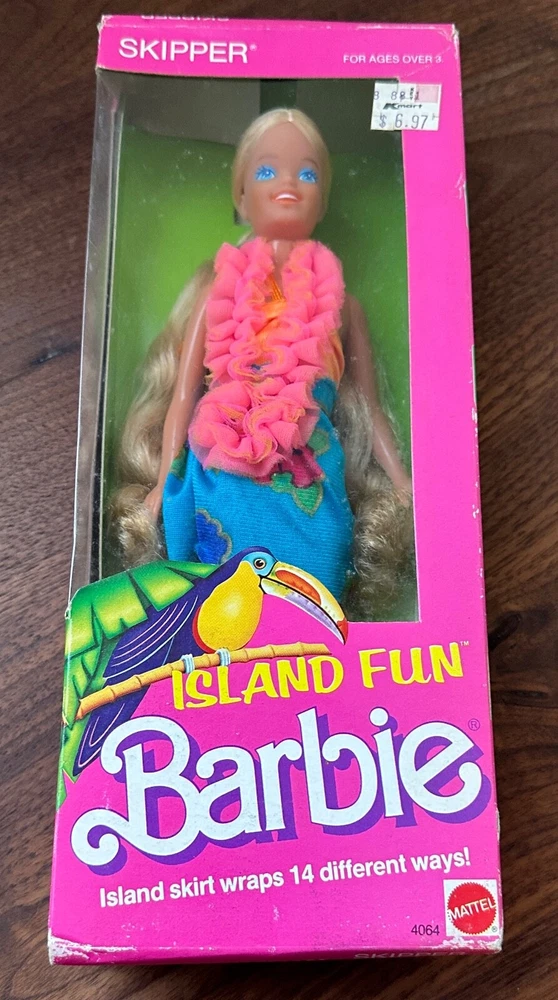 Island Fun Barbie Skipper Doll 4064 Blonde Hair Blue Eyes New 1987 PP There is shelf wear to the outside packaging. The doll is PERFECT!! Original KMART Price Sticker! *EXACT SHIPPING CHARGED* YOU PICK CARRIER/DELIVERY METHOD I DO NOT MARK UP SHIPPING LIKE MOST SELLERS Will ship FAST & SECURE! *I DO OFFER COMBINE SHIPPING* Please check out my other BARBIE Listings & STORE! SAVE ME AS A SELLER! Buy with confidence! Any questions, please message me! Thanks for looking! INV PP