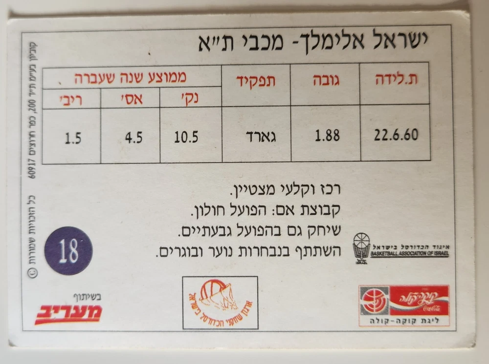 Israel Rare Basketball Dunk 1993 Israel Elimelech Maccabi Tel Aviv