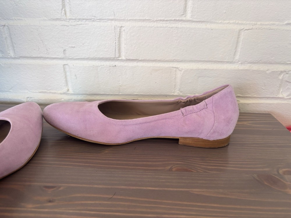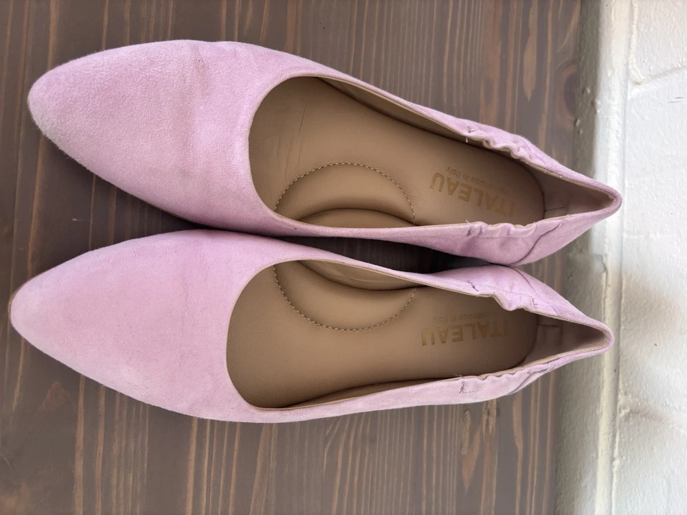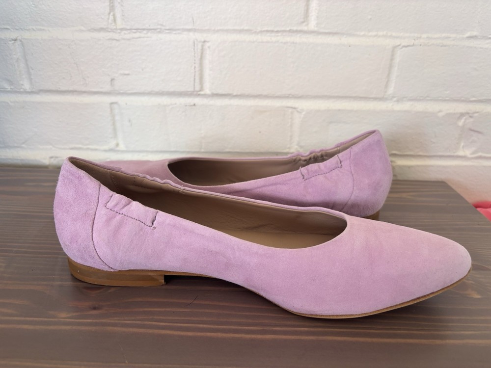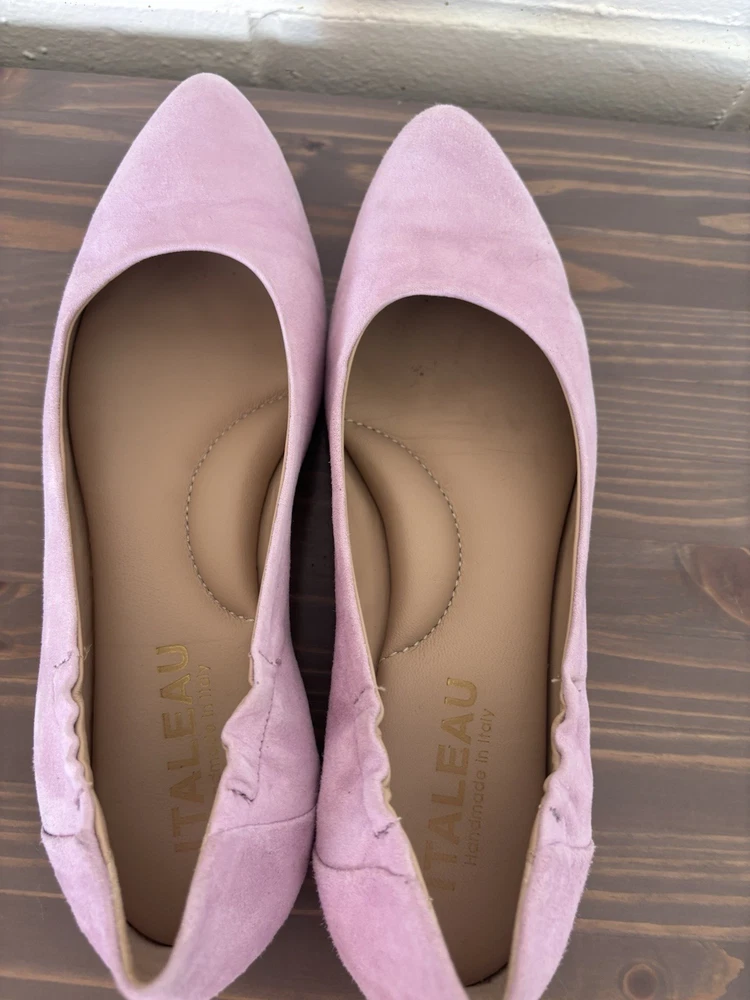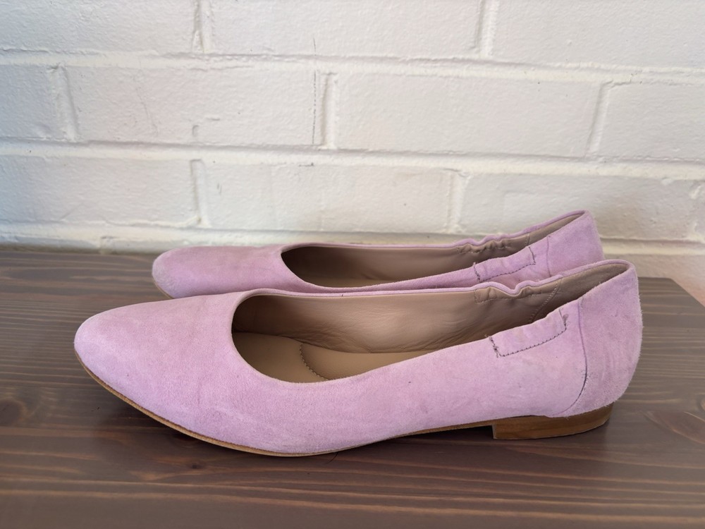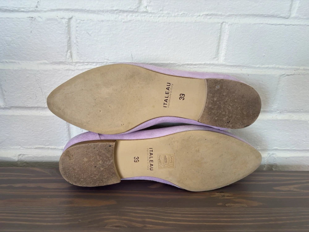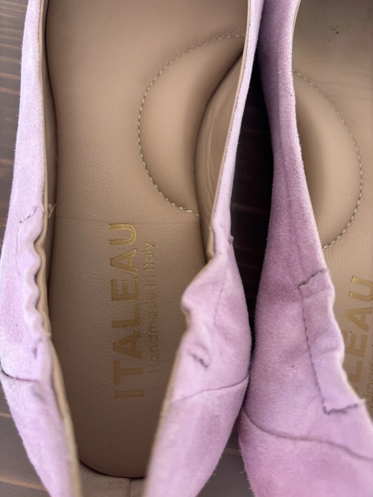 Italeau Mara Suede Ballet Flats Handmade In Italy Amethyst Women's Sz 39 US 8.5. Condition is Pre-owned - Good. Shipped with USPS Ground Advantage.