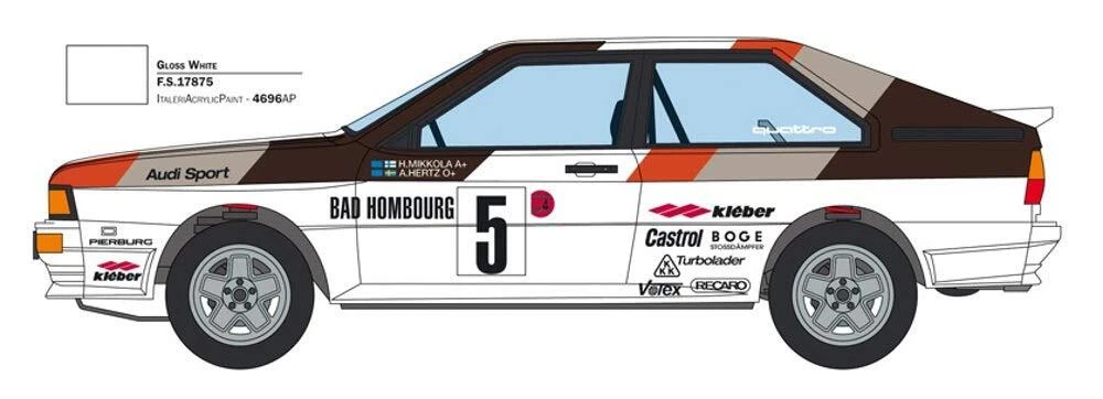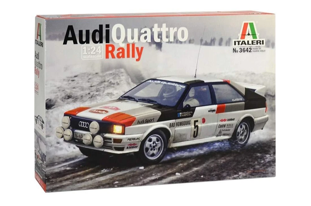 AUDI QUATTRO RALLY Super decal - full colour instructions Type: vintage and modern car / period: modern / nation: germania Skill: 2 Model size: 18. 3 cm / Box size: 34 x 24 x 6 cm Decal rally montecarlo 1981