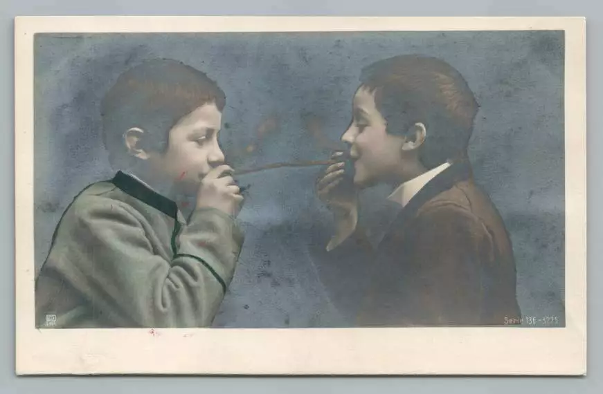 Italian Boys Smoking Cigarette Together RPPC Antique Real Photo Postcard UDB 08