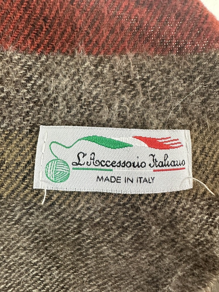 Gorgeous soft brown plaid cashmere rectangle fringe scarf. Made in Italy by L’Accessorio Italianio, lightweight. Heather brown gray with accents of chocolate, beige and rust . No holes or flaws Overall measurements: 64 inches in length not including fringe 16” wide