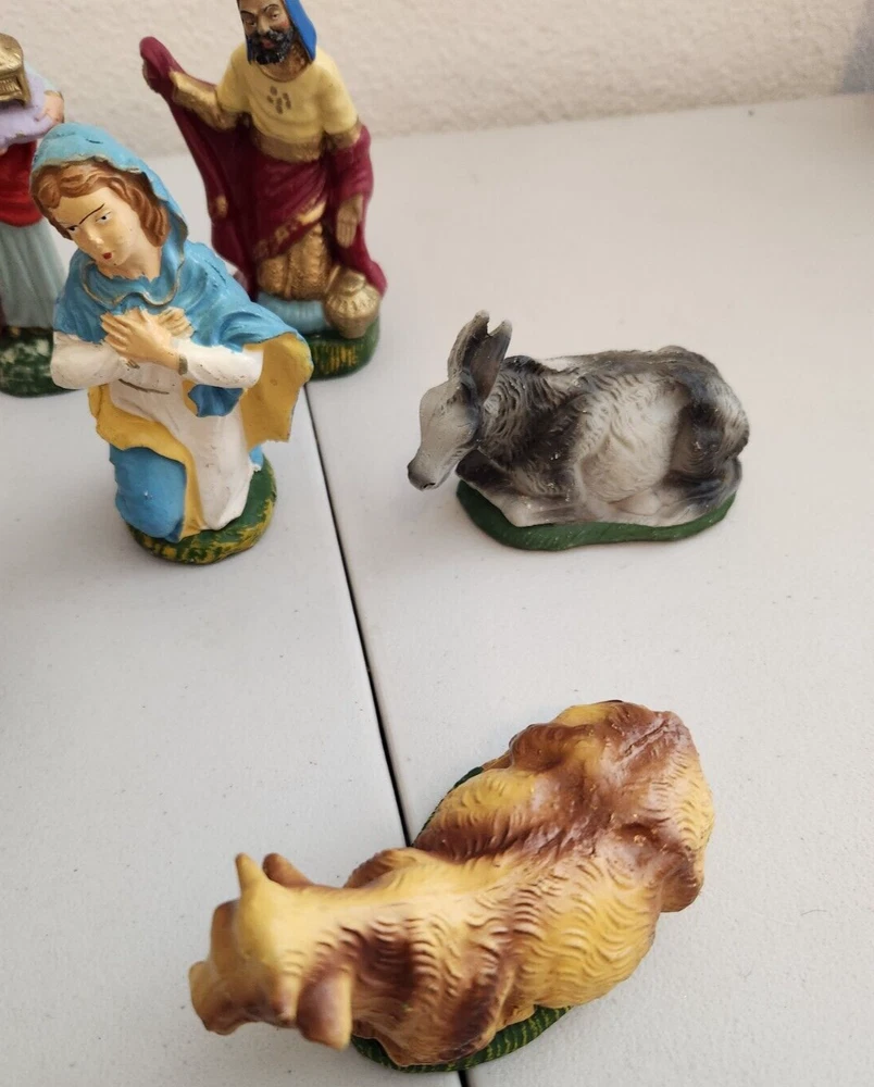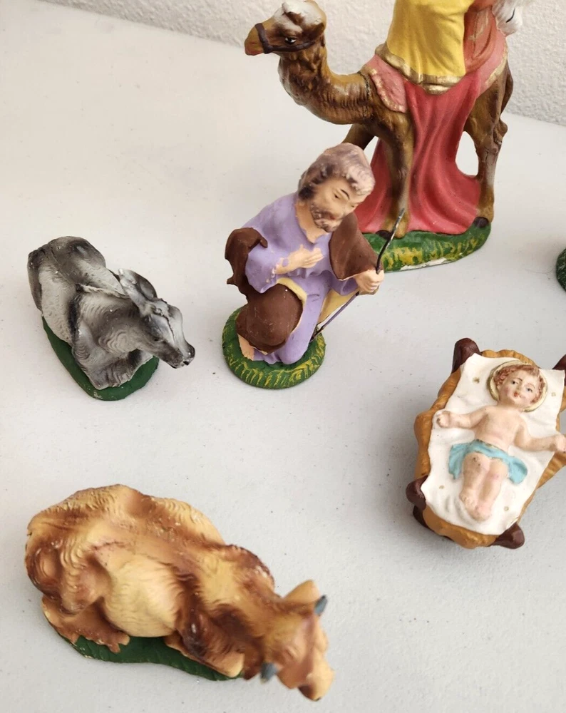 Material: Resin MPN: Does Not Apply UPC: Does not apply Type: Nativity Figurines Occasion: Christmas Brand: Unbranded Size: Small Subject: Jesus Collection: Nativity Figurines Color: Multicolor Set Includes: Joseph, Mary, 3 Wise Men, Angel, Baby Jesus, Boy With Sheep, Camel Features: Vintage gtin13: Does not apply Country/Region of Manufacture: Italy
