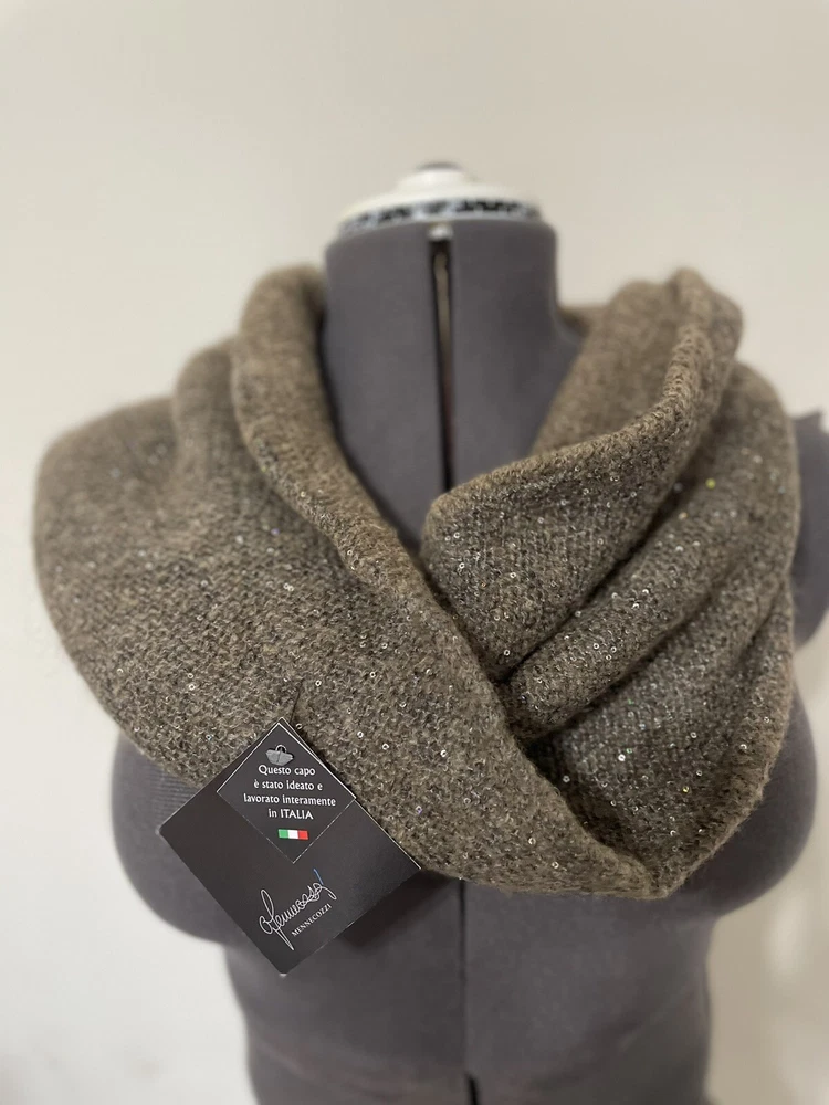 Elevate your style with this Italian quality scarf, perfect for any fashion-forward woman. Crafted from a blend of acrilic, nylon, and mohair, this scarf offers a soft and comfortable feel, while also providing durability and longevity. The rich brown color adds a touch of sophistication to any outfit, making it a versatile accessory for any occasion. This scarf is made in Italy and is designed to meet the highest standards of quality and style. Whether you're dressing up for a special event or simply running errands, this scarf is the perfect addition to your wardrobe. Add a touch of elegance and sophistication to your look with this Italian quality scarf.