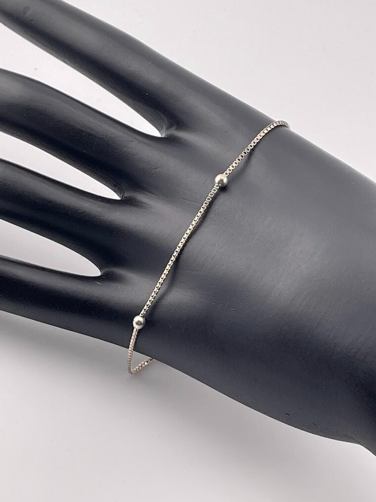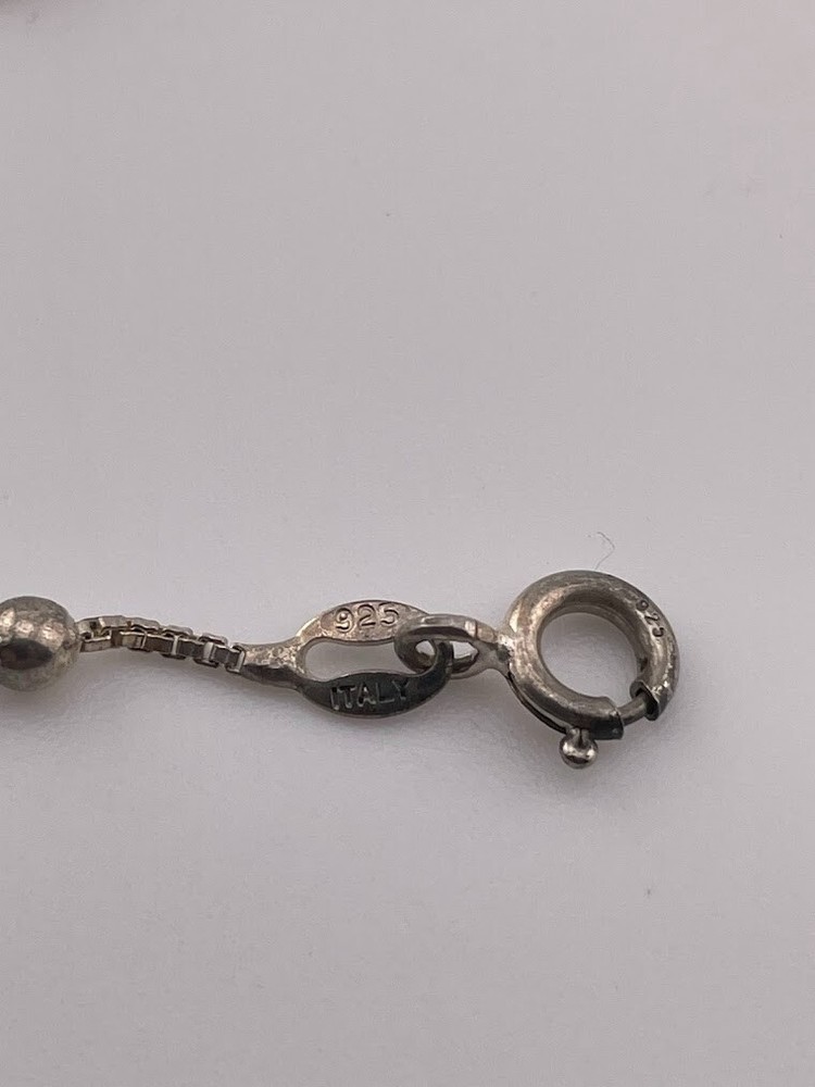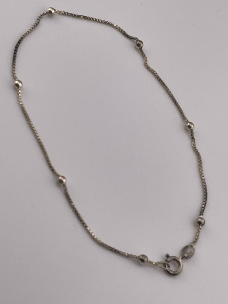 ITALY 925 STERLING SILVER 1MM BOX CHAIN 2.8MM BEAD STATION ANKLET 9.75" 1838 BOHO SURFER ****************************** Thank you for your interest in our jewelry. We?d like to introduce ourselves. We are just a retired couple who love matching our customers with great jewelry. We?re not professional jewelers. To have the best shopping experience we like to recommend the following: Please measure your hand, wrist, finger or neck to ensure the best fit. We can use your measurements to help with sizing. Please ask all the questions you want. We know some stuff and, if we don?t, we?ll do the research. We like to learn too. More Stuff: If an item is described as ?gold over 925 sterling silver? this means it is gold vermeil. Vermeil is the process by which a layer of gold (usually 14k or 18k) is bonded to sterling silver. We only clean with gentle soap and warm water to avoid damage. The items we sell may be new or pre-owned and may have normal wear, slight damage, and/or tarnish. We make every effort to ensure the items we sell are as described. This includes testing to confirm metal purity if the item isn?t marked, and testing for gemstone identity. We try to put measurements in the jewelry description and include a photo of each piece with a U.S. quarter (25mm).