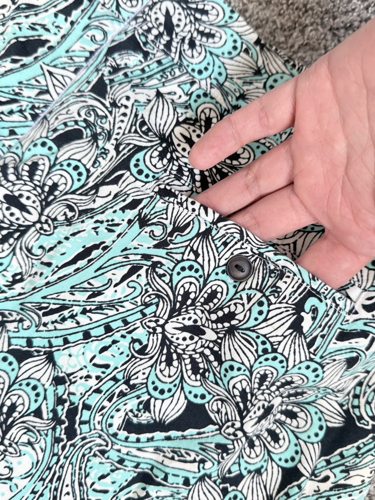 I am so glad to have found this seller & this beautiful Chico's Blue White Ikat Geo Print Top! It is just the color & style I was looking for, in excellent shape & fits perfectly! I highly recommend this seller - the Top was accurately described; plenty of pictures were included in the listing & were so helpful; very well packaged; reasonable price and shipping cost; arrived in perfect condition & shipping time - all outstanding! Thank you so much! :)