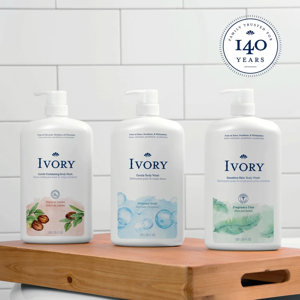 Ivory Body Wash Gentle, Free of dyes, parabens, and phthalates, Original Scent, Features: GENTLE ENOUGH FOR THE WHOLE FAMILY: This body wash ideal for family use. FREE OF DYES, PARABENS, AND PHTHALATES: Enjoy peace of mind with a body wash that is free of dyes, parabens, and phthalates. ORIGINAL SCENT: The classic and refreshing scent of this body wash provides a clean experience. RICH LATHER: This body wash gives you a rich creamy lather that is designed to cleanse and be gentle on skin. Ivory Body Wash Gentle, Free of dyes, parabens, and phthalates, Original Scent, 35 oz Details: Ivory Gentle Body Wash is thoughtfully crafted for the entire family. This body wash is designed to be gentle on skin, making it a perfect choice for everyone from kids to adults (3 yrs and up). Our Gentle Body Wash gives you a rich creamy lather that is designed to cleanse and be gentle on skin - leaving your skin feeling soft, smooth, and moisturized. With its generous 35 oz size, the Ivory Gentle Body Wash is perfect for daily use, keeping your family feeling fresh and clean. Features: GENTLE ENOUGH FOR THE WHOLE FAMILY: This body wash ideal for family use. FREE OF DYES, PARABENS, AND PHTHALATES: Enjoy peace of mind with a body wash that is free of dyes, parabens, and phthalates. ORIGINAL SCENT: The classic and refreshing scent of this body wash provides a clean experience. RICH LATHER: This body wash gives you a rich creamy lather that is designed to cleanse and be gentle on skin. Ivory Body Wash Gentle, Free of dyes, parabens, and phthalates, Original Scent, 35 oz Details: Ivory Gentle Body Wash is thoughtfully crafted for the entire family. This body wash is designed to be gentle on skin, making it a perfect choice for everyone from kids to adults (3 yrs and up). Our Gentle Body Wash gives you a rich creamy lather that is designed to cleanse and be gentle on skin - leaving your skin feeling soft, smooth, and moisturized. With its generous 35 oz size, the Ivory Gentle Body Wash is perfect for daily use, keeping your family feeling fresh and clean. eBay integration by