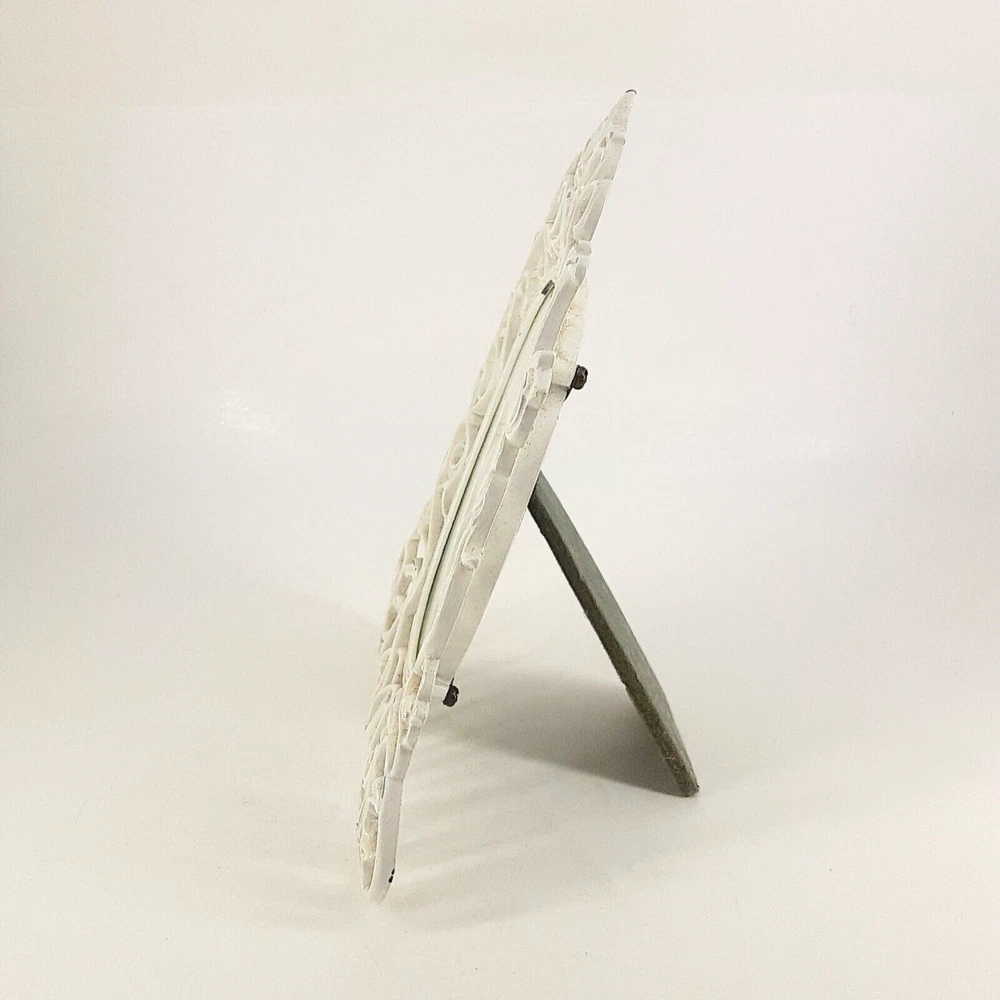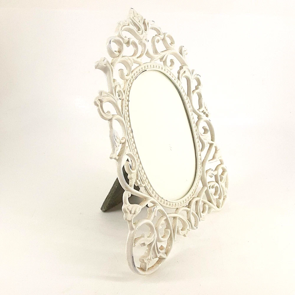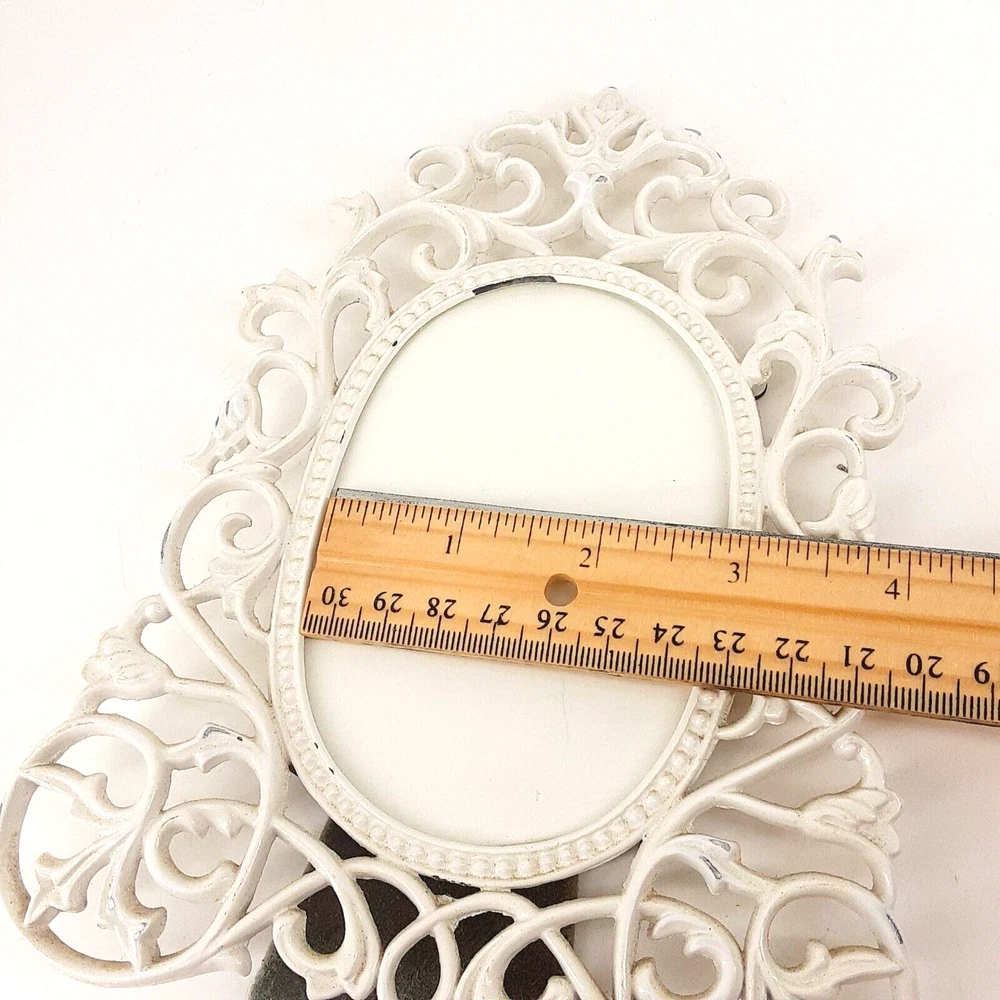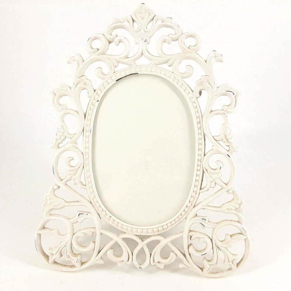 WE APPRECIATE OUR CUSTOMERS THANK YOU FOR SHOPPING WITH US!! Ivory Color Open Scroll Enamel Table Picture Photo Frame Lightly Destressed Display your treasured memories with this beautiful Victorian-style photo frame. The oval-shaped ivory enamel frame features an elegant open scroll design, lightly distressed for a vintage look. At 7 3/4" in height and 5 1/4" in length, it can hold a single 5x3.5" photo and is made of durable metal. The frame is perfect for adding a touch of sophistication to any room and would make a great addition to any collection of decorative collectibles. *Please look at pictures as they are part of the description/details. *Good Preowned Condition *Thanks for looking! Please remember items listed as vintage or used will typically show age appropriate wear. I have provided lots of photos for you to see the general condition of each item. If you would like any further photos or information, please contact me and I will be happy to try and help. I do my best to describe items accurately. Pictures are considered part of the description. Cameras and/or computers can sometimes slightly alter colors. Any measurements should be considered approximate. If you need an exact measurement, please ask. Terms and Conditions : Once a purchase has been made, it is legally binding contract. Payments: Payment is due when purchase is made, Thank you for your prompt payment. *If payment is not received within 4 days of purchase, then a Non-Paying Buyer Dispute will be filed, and eBay may mark it against your account. SHIPPING: We ship daily (Mon-Fri not to include holidays) and will ship within two business day of receiving payment! I do accept returns if you are unhappy with your item for any reason. I ask that it be returned in the original condition you received it in. I take pride in shipping items carefully. However, if an item arrives damaged, please contact me immediately. All shipping materials (box, poly bag, bubble wrap, paper, etc.) must be kept, as well as it is necessary to take 7 pictures to document exterior damage of the box, as well as the interior damage of the item(s) that was purchased. This documentation is required to file a damage claim with both USPS and UPS. Upon Receiving : If you are satisfied with your product(s), please leave some positive feedback. *We love hearing that you have received your purchase(s), and are content, delighted, and untroubled. *Once you receive your purchase(s), please inspect them for any damage during transit. Report any damage within 24hrs via eBay e-mail. Return Policy : You may return unworn, unwashed merchandise in its original condition with all tags attached. If you bought a brand-new item, it MUST be returned brand new (Sealed and Any returns MUST be sent back to us complete and in the same condition as delivered to you Unopened). Items must be in new or original condition (free of odor, markings etc.) and ready for resale. Any serial or product numbers must match the purchased item for refund. PLEASE NOTE that shipping will not be refunded . Upon time of purchase, you are agreeing to this return policy. CHECKOUT: Please make sure that your address on file with eBay is complete and correct as we must use the address you have with eBay. *If you have any questions about your purchase, delivery, or a possible product return; Please contact us immediately and directly through your eBay accounts message center! *We are Eco-Friendly, leaving the lightest possible impact on our environment! Whenever possible we will reuse packing material to aid with our Eco goals. Customer service and feedback: If you have any questions about your purchase, delivery, or a possible product return; Please contact us immediately and directly through your eBay account message center! Your satisfaction is our top priority! Our goal is to earn your 5-star 100% feedback. Thank You for buying from us!