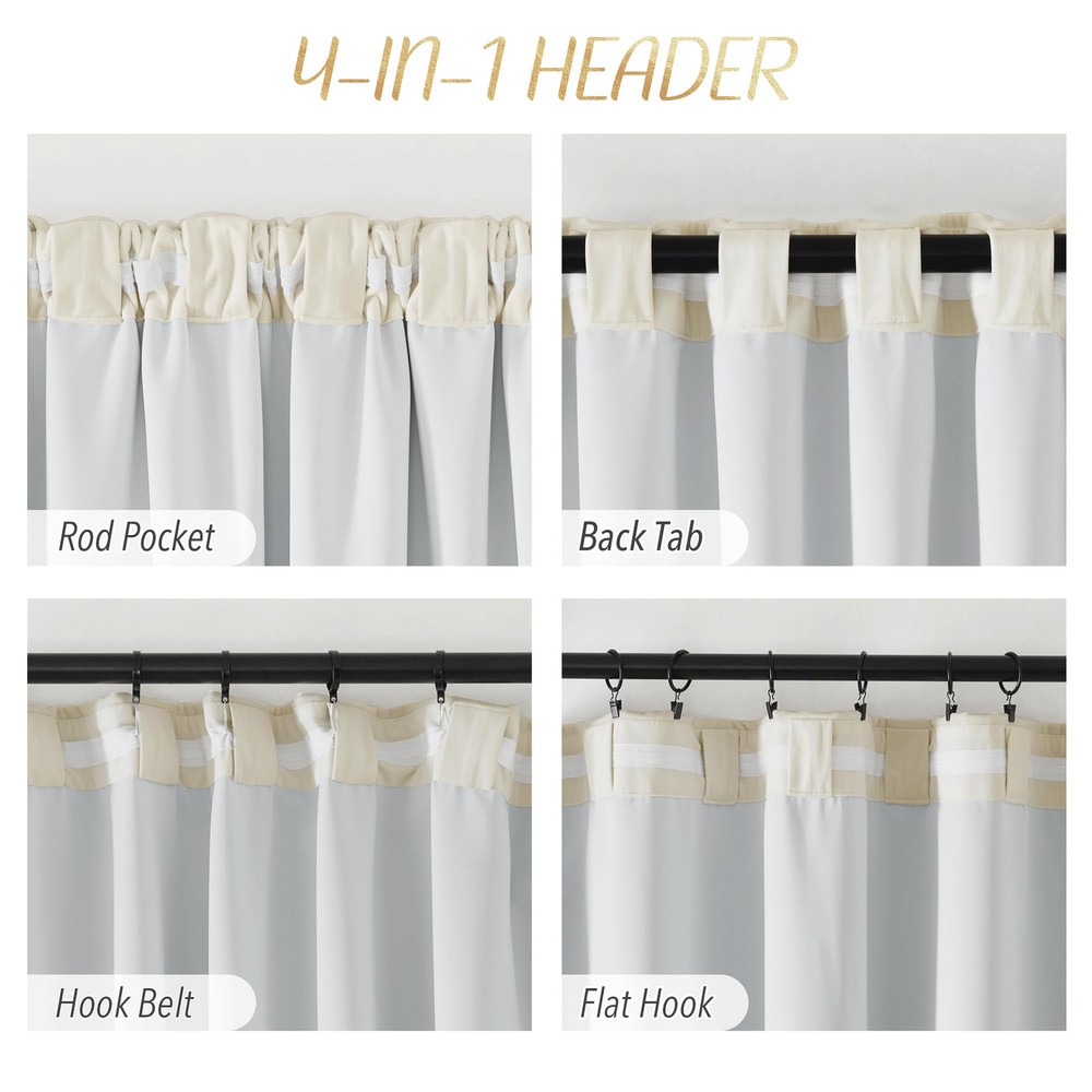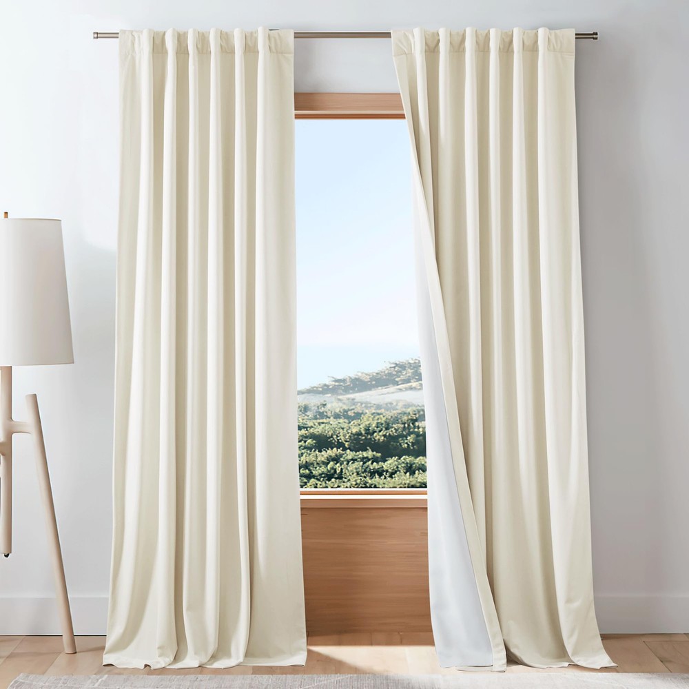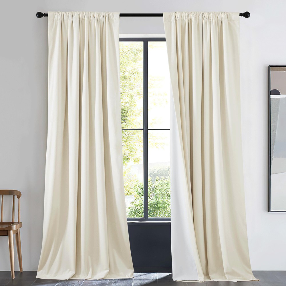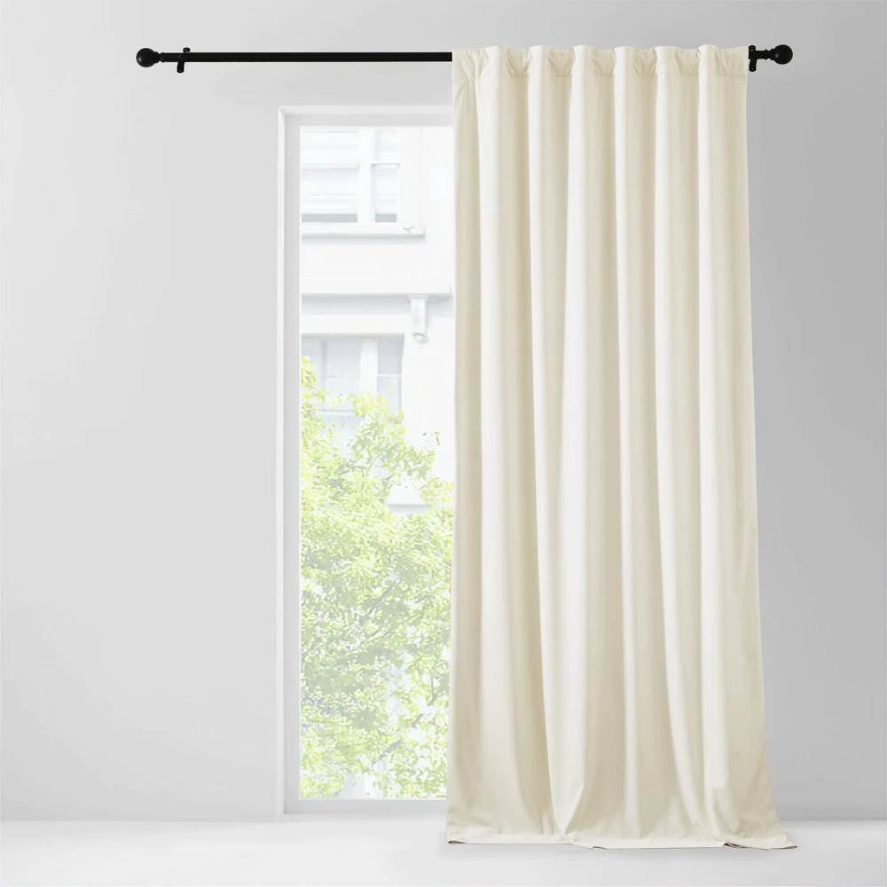Velvet Blackout Curtain Ready Made: Package includes 1 panel of velvet room darkening curtain, each measuring 48"W, with 3 hanging options(2.2" diam) to suit most of the standard or decorative curtain rods. Light Blocking: The room darkening curtain with luxury velvet textured will block most of the sunlight, heat, cold, and noise out with 100% privacy for your good sleep or rest even during the day. Hanging Options: You can hang your new drape using the back tab, or rod pocket, or use small hooks on the hook belt to let them gently hang downward, then you will get elegant pinch pleated curtains. Wide Compatibility: These functional velvet curtain will decorate your windows and rooms with a new sense. Perfect for bedroom, living room, laundry, patio, and nursery to most of your home decors. Easy Care: Good quality finishing will withstand years of use. Machine washable and Wash the water temperature below 86℉. Mild detergent no bleaching. Quick ironing when needed.