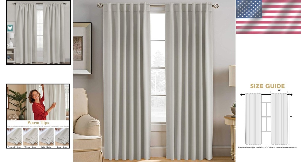 Ivory/Cream Blackout Thermal Curtains 52x84 - Room Darkening Drapes Set of 2 ‹ › ‹ › ‹ › ‹ › ‹ › ‹ › ‹ › ‹ › ‹ › ‹ › Ivory/Cream Blackout Thermal Curtains - Room Darkening Drapes Set of 2 Transform your living space with our exquisite set of Ivory/Cream Blackout Thermal Curtains. These elegant window treatments are designed not just to enhance the beauty of your home but to provide you with the utmost functionality and comfort. Key Features: • Dimensions: Each panel measures 52 x 84 inches, and together they cover a width of 104 inches. • Comes in a set of two window panels for a complete look. • Versatile hanging options: Choose from back tab, rod pocket, or pleated styles to match your decor. • Crafted from high-density microfiber polyester featuring three layers for superior thermal performance. • Passed the GLOBAL RECYCLED STANDARD certificate; free of harmful chemicals, safe for children and nurseries. • Effectively blocks 70% of light and 100% of harmful UV rays. • Insulates against heat and cold, promoting energy savings and enhancing privacy while reducing noise. Aesthetic Allure: The timeless solid tone pattern of these curtains offers a chic and modern touch, effortlessly complementing your existing decor. Whether it’s your living room, bedroom, or nursery, these curtains serve as a stylish element that enhances any room's ambiance. Effortless Maintenance: Enjoy the convenience of machine-washable fabric. For care, use only non-chlorine bleach when required, tumble dry on low, and warm iron as needed to keep them looking pristine. Why Choose Our Blackout Thermal Curtains? Upgrade your home experience with our Blackout Thermal Curtains that combine functionality with exquisite design. Create a peaceful sanctuary that allows you to enjoy your home time in elegance. Don't settle for ordinary when you can have extraordinary—invest in these luxurious drapes today! Shipping Free & Fast Shipping - We offer free shipping to most of the USA with a normal delivery time of 3-7 days. However, due to the current situation, additional delivery time (up to 3 weeks) may be required for some items. Alternative Carriers - We may use alternative carriers (e.g. USPS, FedEx, UPS, etc.) to ensure your package arrives safely and on time. Due to the use of multiple carriers, we are unable to provide a tracking number automatically. Handling Time - Orders are processed and shipped within 1-2 business days of receiving cleared payment. Shipping Restrictions - Shipping to Alaska, Hawaii, Puerto Rico, Guam, and other US territories may incur shipping charges or delivery restrictions. Please contact us before ordering, or your order can be refunded/cancelled. State Restrictions - There may be restrictions based on your state of purchase. For example, certain items may not be shipped to California due to state regulations. Contact for Tracking Updates - If you require tracking updates or have any concerns about the delivery of your order, please feel free to contact us, and we will be happy to assist you. Return 30-Day Hassle-Free Returns - We want you to be completely satisfied with your purchase. If you are not, you can return the item within 30 days of receiving it for a full refund or exchange. Easy Return Process - To start a return, simply contact us and we will provide you with a prepaid return shipping label and detailed instructions. Restocking Fee - There are no restocking fees for returns. However, the buyer is responsible for return shipping costs if the return is not due to a seller's error. Refund Processing Time - Refunds will be processed within 5 business days of receiving the returned item in its condition. Payment We accept all major credit cards, PayPal, and Apple Pay for your convenience. Your payment information is secure and encrypted to ensure a safe and seamless transaction. Please complete your payment within 3 days of purchase to avoid any delays in shipping. Feedback Your feedback is extremely important to us. We strive to provide the best products and customer service possible. If you are satisfied with your purchase, please take a moment to leave us a positive review. If you have any concerns or issues with your order, please contact us before leaving negative feedback. We are committed to resolving any problems and ensuring your satisfaction. Contact Us If you have any questions or concerns, please feel free to out to our customer support team. You can contact us through the eBay messaging system. We are available Monday to Friday, 9:00 am to 5:00 pm EST, and we will do our best to respond to your inquiry within 24 hours. Buy it now and enjoy a pleasant shopping experience! Item Height: 0.1 Centimeters Unit Quantity: 1.0 count Features: Blackout,Thermal Insulation,Room Darkening,Energy Saving,UV Protection,Noise Reduction,Privacy Protection,Washable,Self Propelled Department: Adults Care Instructions: Machine Wash Type: Panels Color: Ivory/Cream Material: Polyester Pattern: Solid Transparency: Blackout Room: Living Room Style: Contemporary Curtain Heading: Rod Pocket Size: 52"w x 84"l (pack of 2) Mounting: Rod Pocket Item Weight: Medium Compatible Window Type: Single Hung Window