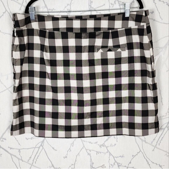 Izod Black White Gingham Checks Mini Skort style tags: golf, preppy, tennis prep, athletic Women's 16 Waist: 39" Length: 17.5" Good used condition: no rips, marks or stains.