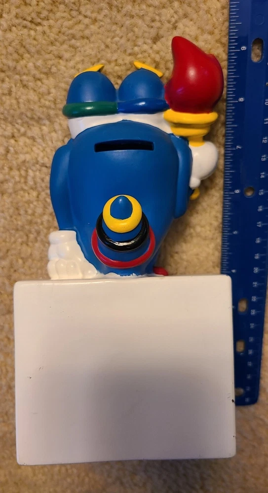 Izzy Olympic Mascot Torchbearer Atlanta 1996 Bank 8" tall. Plastic. Excellent condition - see photo's. minor staining on the one side base. USPS Ground Advantage shipping $9.90