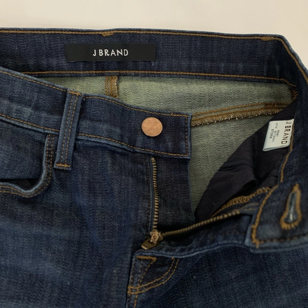 - J Brand Remy Jeans Women 24 Storm Dark Wash Indigo Blue Cotton Stretch Flat Lay mesurements approx: Waist: 12" Rise 9" Inseam: 33.75" - great for tall sizes Excellent preowned condition. No holes or stains. FAST Shipping! 1-3 business days. Offers welcome! Tags: everyday fashion stylish trendy classic spring summer fall winter seasons apparel comfy comfortable easy to wear classy casual favorite y2k 1893 80s 90s versatile essential timeless sophisticated high quality normcore basic loose comfortable light neutral informal mature self-confident Midwest plain relax simple