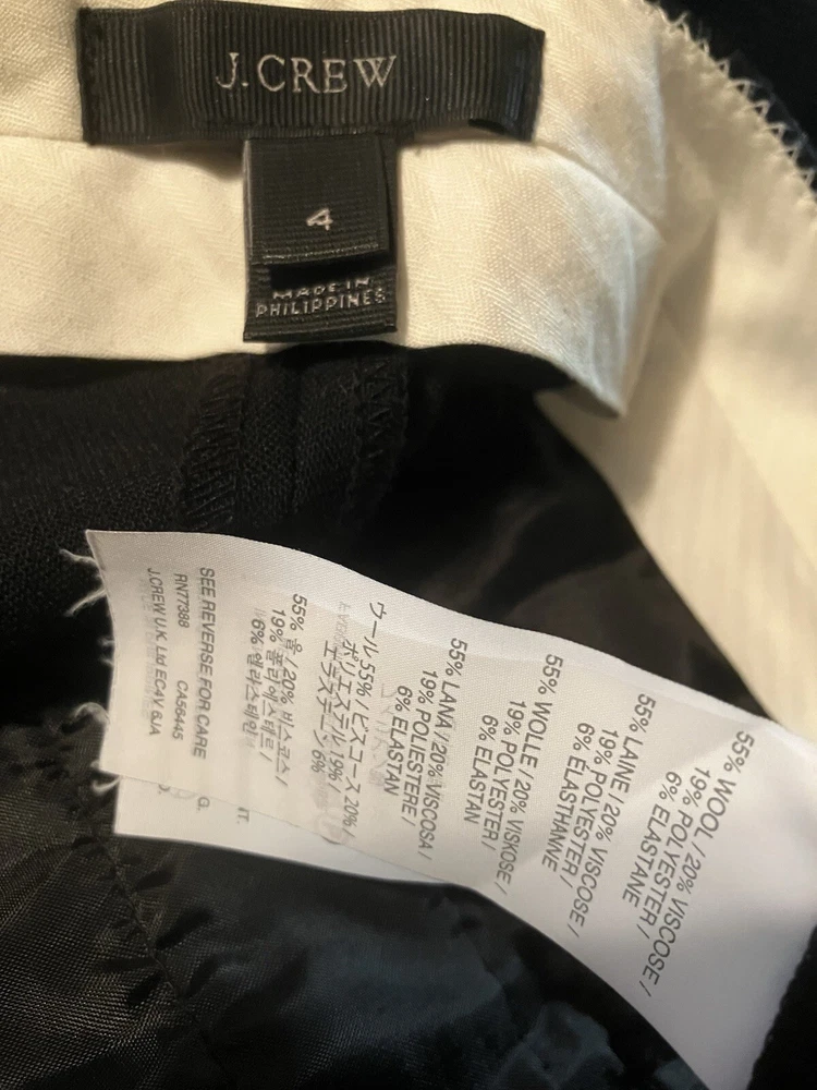 👗W E A R | L U X U R Y👗 J CREW Black Flat Front WOOL Stretch UNLINED Pants trousers size: 4 Perfect! Great pair of versatile pants by J.Crew They are in like new condition. Wear these pants with confidence! -perfect neutral -Look polished with any blouse, cardigan or blazer -You ll be surprised how much you already own that look great with these pants. -High-end, First Quality! -classy, timeless pair of pants to wear anywhere! -unlined. Beltloops. -zip secured pockets Approximate measurements below as well as some additional details! MEASUREMENTS:PANTS in INCHES WAIST: 30” RISE: 9” INSEAM: 29.5” Visit My eBay Store: A Designer Closet Payment, Terms & Conditions: Combination shipping offered. All payments must be paid within THREE days. Worldwide Shipping. Customs forms will reflect the purchase price of the item. All items are nicely packaged. Domestic shipping includes delivery confirmation and is shipped QUICKLY after payment is received! If you would like insurance, please purchase. A Designer Closet offers hand selected, one of kind upscale designer finds, Returns are only done if the garment is grossly misrepresented. All items come from a clean, non-smoking home. Bid & Buy with Confidence! CHECK OUT the OTHER fine AUCTIONS!- Everyone needs something in their closet to make it A Designer Closet!