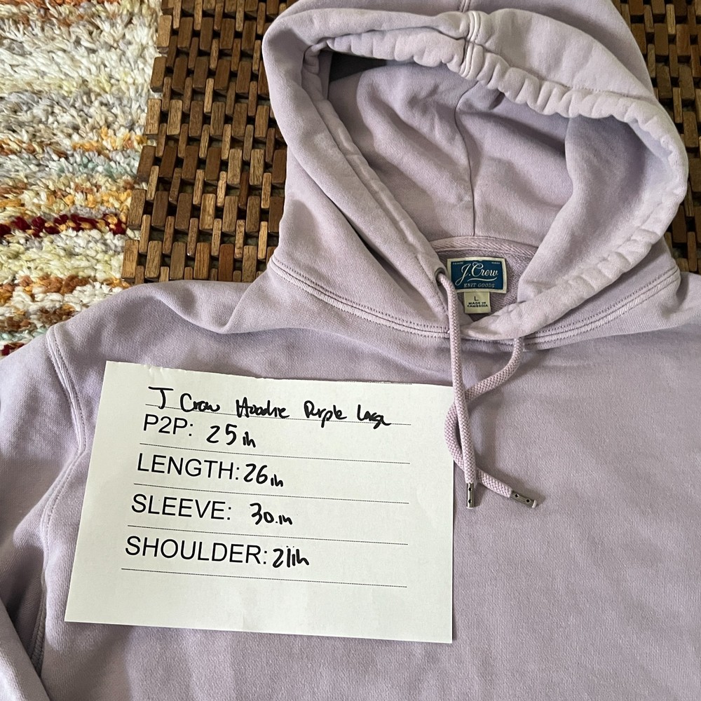 The J. CREW Purple Heavy Knit Hoodie is a stylish and versatile pullover designed for men. Made from cotton, this solid purple hoodie features long sleeves and a hood for added warmth in the winter, fall, and spring seasons. With a regular fit and a size large, this hoodie is perfect for casual wear and activities such as walking. Easy to care for with machine washable instructions, this J.CREW hoodie is a comfortable and stylish addition to any man's wardrobe.