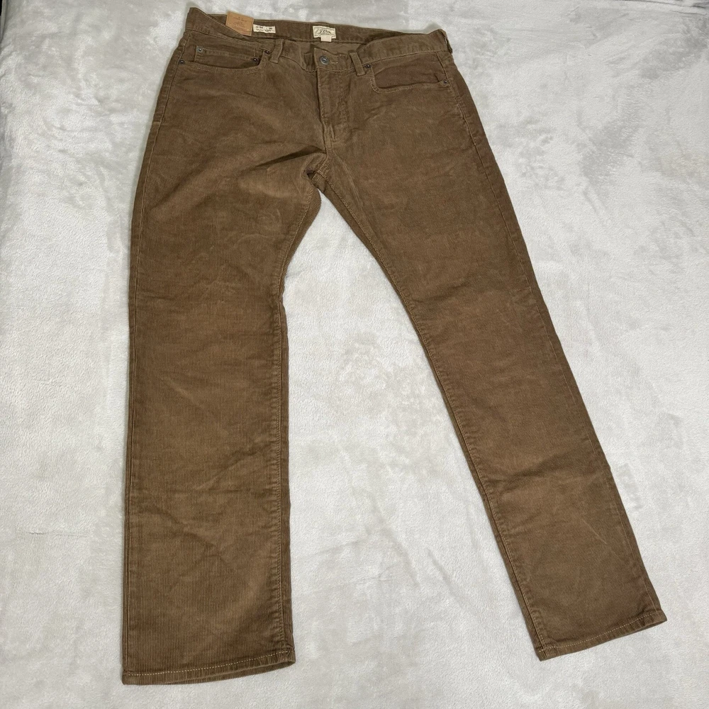 Elevate your wardrobe with these stylish J.CREW 484 corduroy pants in a rich brown color. These pants feature a slim fit design with a mid-rise waistline and a straight leg style. The 5-pocket design with button and zip closure provides ample storage space for your essentials. Crafted from a blend of spandex and cotton, these pants provide stretch and comfort, making them perfect for winter, fall, and spring seasons. The solid pattern and army, USA, and preppy themes add a touch of sophistication to your outfit. These pants are machine washable and are available in size 34 waist and 30 inseam.
