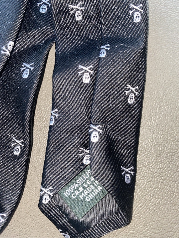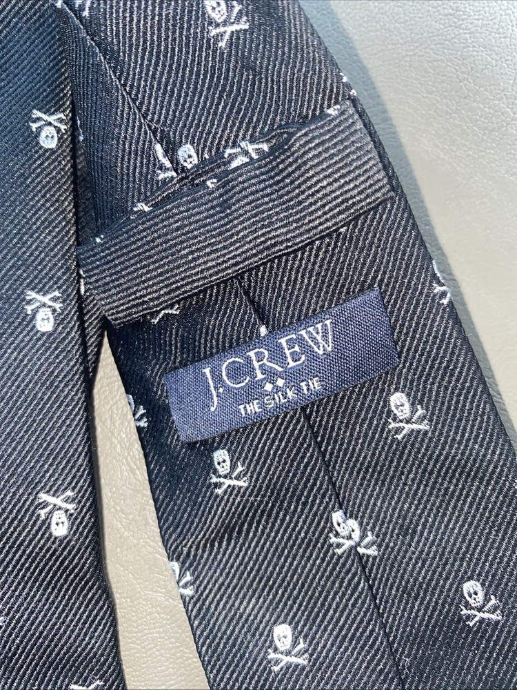 The J Crew 100% Silk Tie in black with a white skull all over print is a stylish and sophisticated accessory for men. Made in China, this slim tie features a unique skull pattern that adds a touch of edgy flair to any outfit. The high-quality silk material and sleek J.Crew branding make this tie a versatile and eye-catching addition to any man's wardrobe.