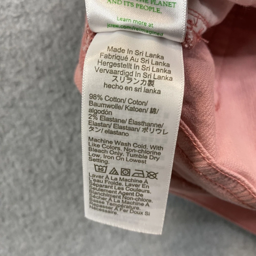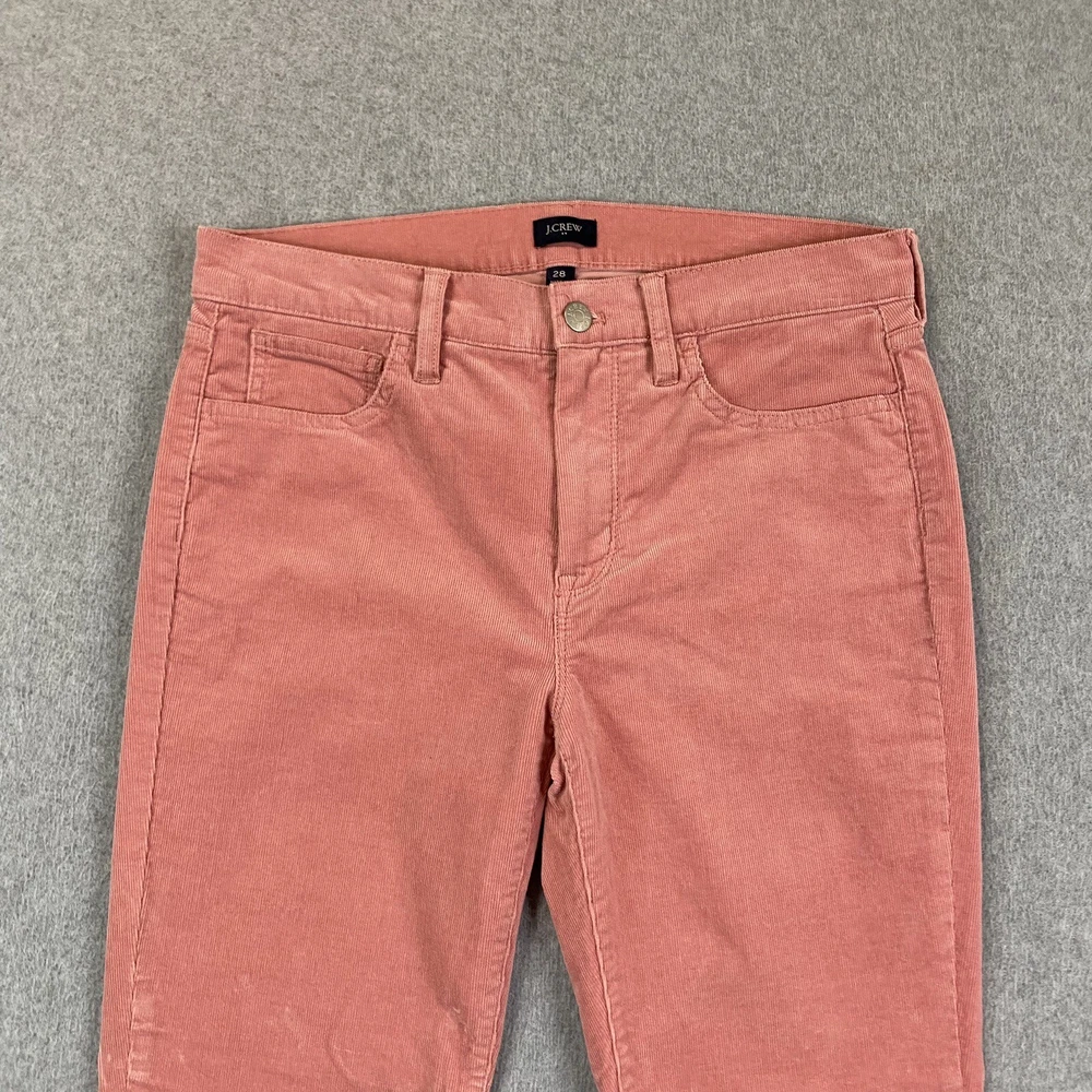 Material: Cotton, Elastane Pattern: Solid Theme: Casual, City, College, Preppy, chic, formal, mom, office, student, studentr, style, stylew, work Closure: Button Inseam: 26.5 in Garment Care: Machine Washable Features: Easy Care, Stretch Type: Pants Leg Style: Straight Waist Size: 30 in Department: Women Size Type: Regular Style: Chino Seller Notes: “Item is in used condition with no holes or stains.” Brand: J.CREW Front Type: Flat Front Fabric Type: Corduroy Fit: Slim Country/Region of Manufacture: Sri Lanka Color: Pink Occasion: Casual Vintage: No Accents: Button Size: 28