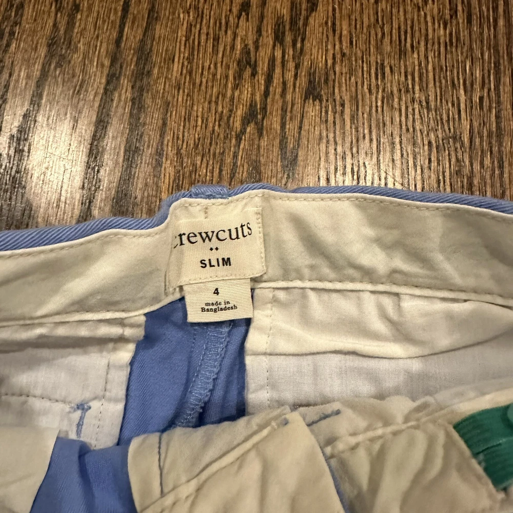 Brand: Crewcuts Fabric Type: Twill Color: Blue Style: Chino Type: Pants Closure: Zip, Hook & Loop Department: Boys Size: 4 Material: Cotton