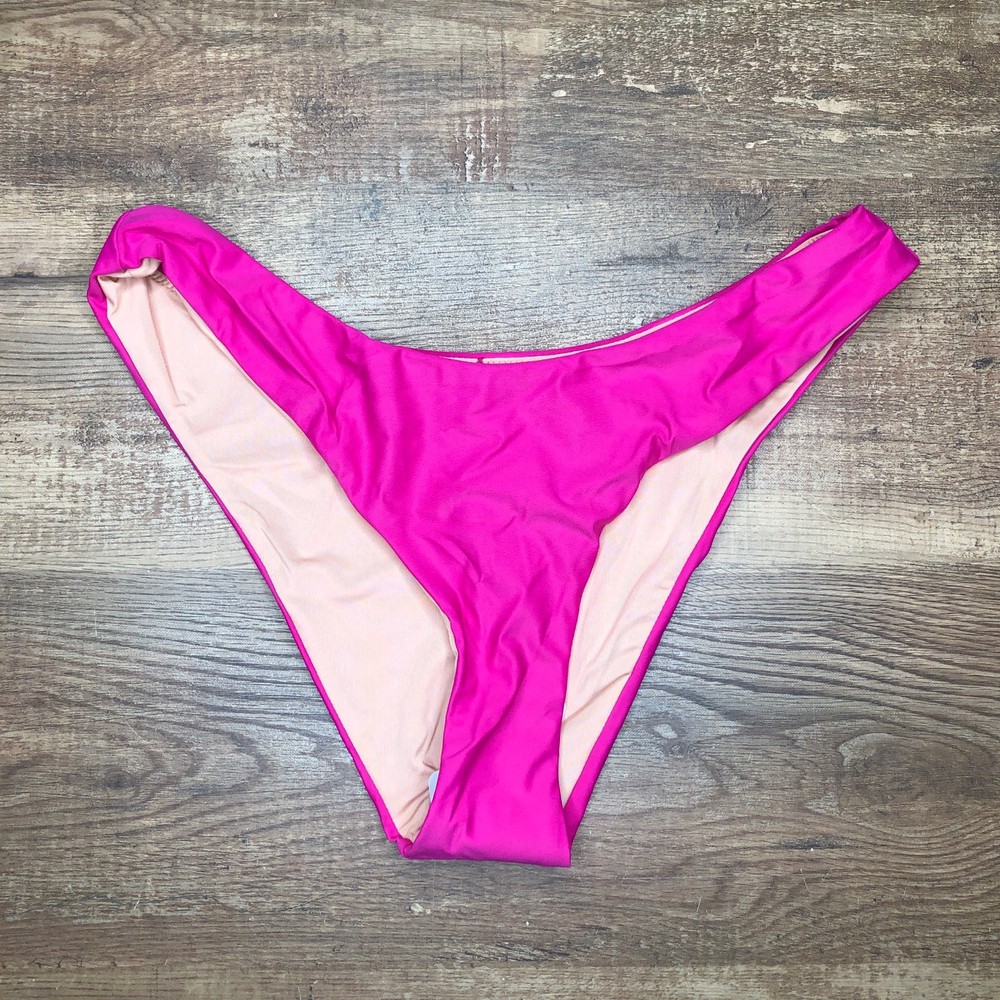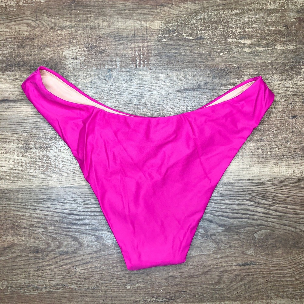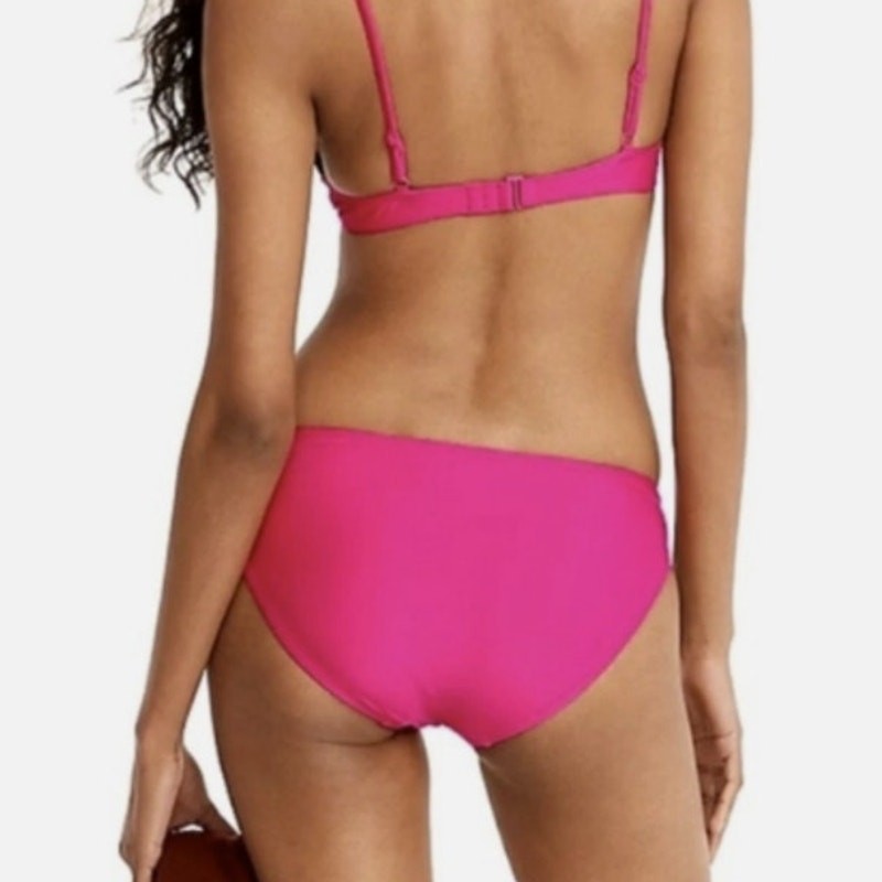 J. Crew Curved Waist Cheeky Bikini Bottom Size Medium Radiant Fuchsia Pink BC125 NWT Midrise. High-cut leg. Cheeky coverage. Approximate Measurements: when laying flat Waistband: 13.25 inches Rise: 9 inches Leg Opening: 12 inches