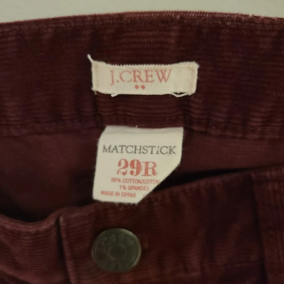 J Crew Factory Women's Skinny Stretch Corduroy Pants Burgundy Size 29R