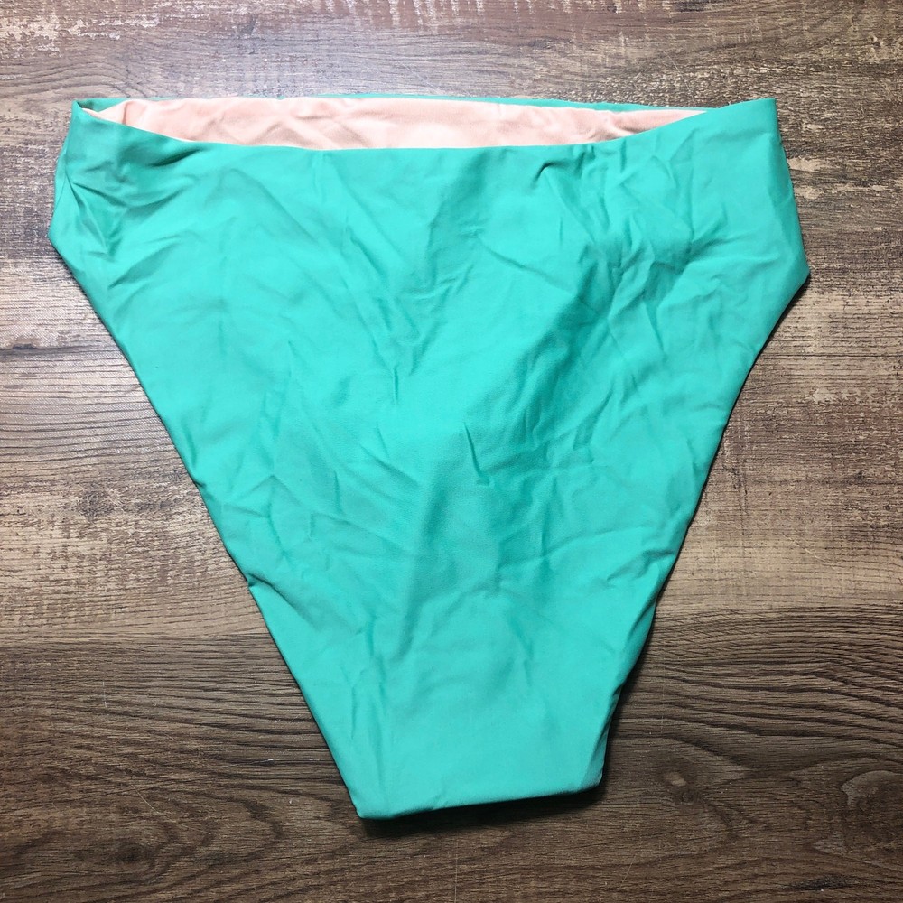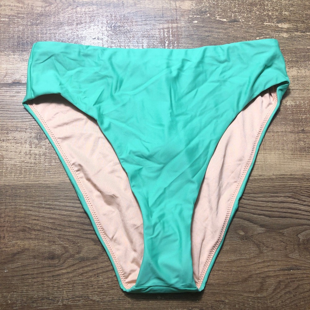 J. Crew High-Rise Bikini Bottom Swim Size Medium Cool Green BF178 NWT High rise High-cut leg Moderate coverage Approximate Measurements: when laying flat Waistband: 13.5 inches Rise: 12 inches Leg Opening: 11 inches