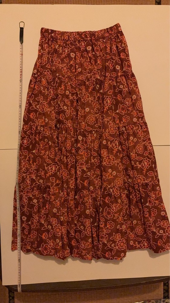 J Crew New Tiered Pull-On Maxi Skirt in Vintage Vines sz XXS Pecan Color Cotton