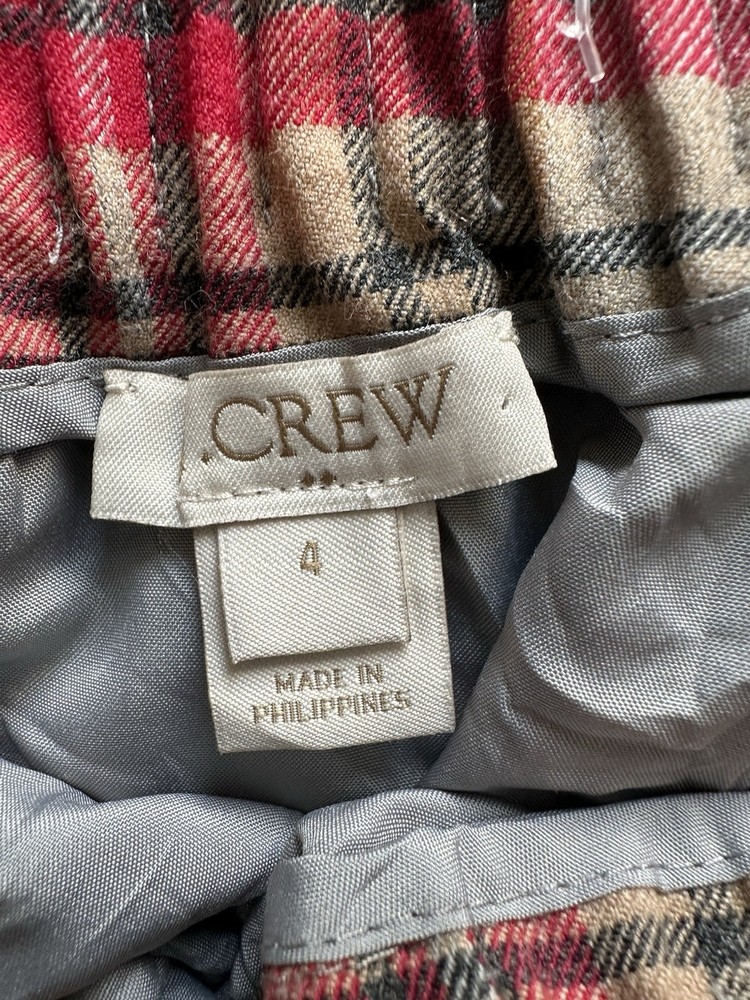 Country/Region of Manufacture: Philippines Character: Plaid - Red Gray Colorway Season: Fall, Spring, Summer Style: A-Line Personalization Instructions: na Brand: J.CREW Rise: Mid MPN: 06308 Vintage: No California Prop 65 Warning: na Type: Skirt Fabric Type: Knit Accents: Elastic Accordian Waist Personalize: No Garment Care: Machine Washable Color: Red Department: Women Theme: Holiday Material: Wool Blend Handmade: No Closure: Pull On Size Type: Regular Features: Lined Skirt Length: Short Size: 4 Occasion: Business, Casual, Party/Cocktail Pattern: Plaid