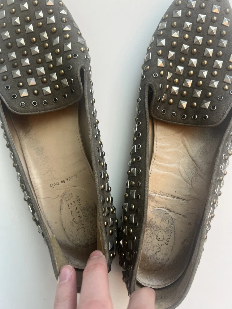 J. Crew Studded Suede Loafers Size 10 Excellent condition Chic and stylish studded loafers in a versatile gray color. Perfect for adding a touch of edge to any outfit.