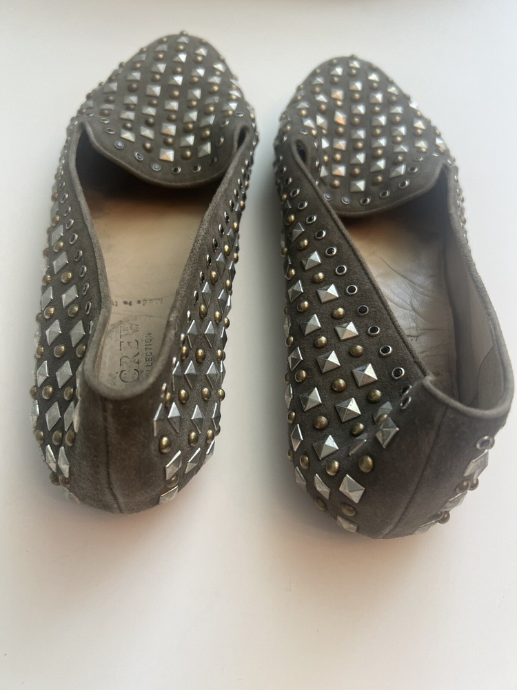 These chic loafers add instant style with their sleek gray suede and subtle studs—so comfortable and versatile for dressing up or down. The quality is amazing, and they arrived in perfect condition. Absolutely love them!