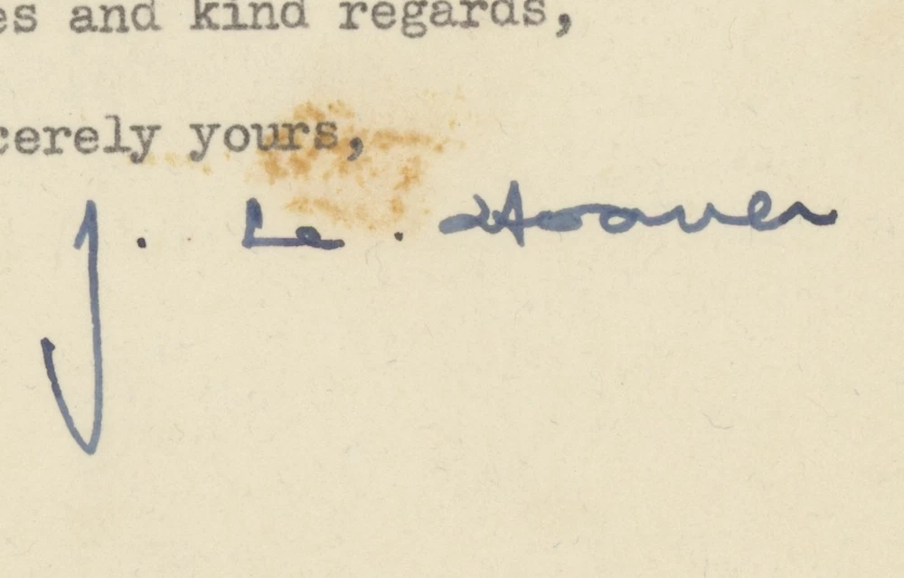 J Edgar Hoover FBI Director Autographed Signed Letter AMCo COA 25318