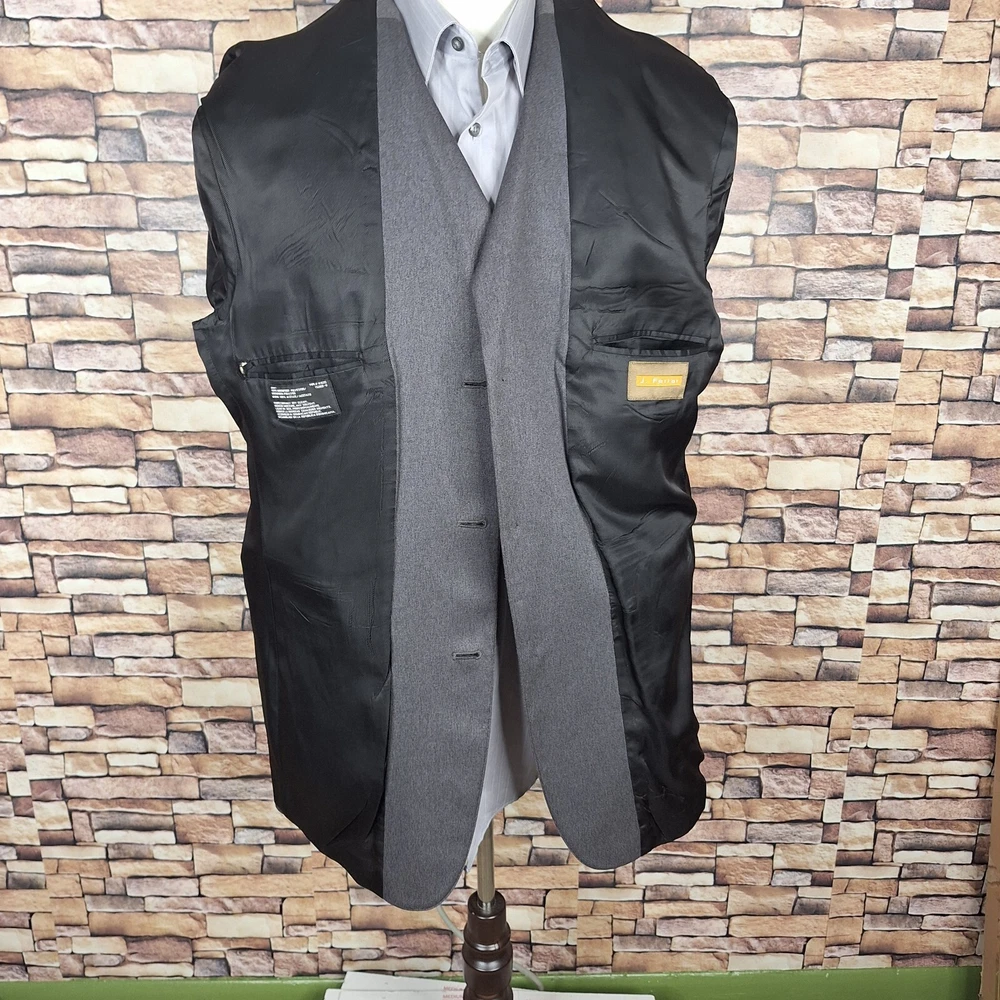 J Ferrar Jacket Blazer Mens 42L Gray Microfiber Polyester 3 Button Ventless Quality used condition. Please check out the measurements before buying to ensure a perfect fit. Shirt Size on Label 42L Shoulder- Hem 33.00'' Shoulder- Shoulder 20.00'' Shoulder- Wrist 26.50'' Armpit- Armpit 22.00'' Mid button 21.00'' Everything ships within a day. Spot cleaned according to manufacturer's recommendations. Has a chance of wrinkling in the mail. Feel free to message me with any questions. Thank you very much. 1/19/25