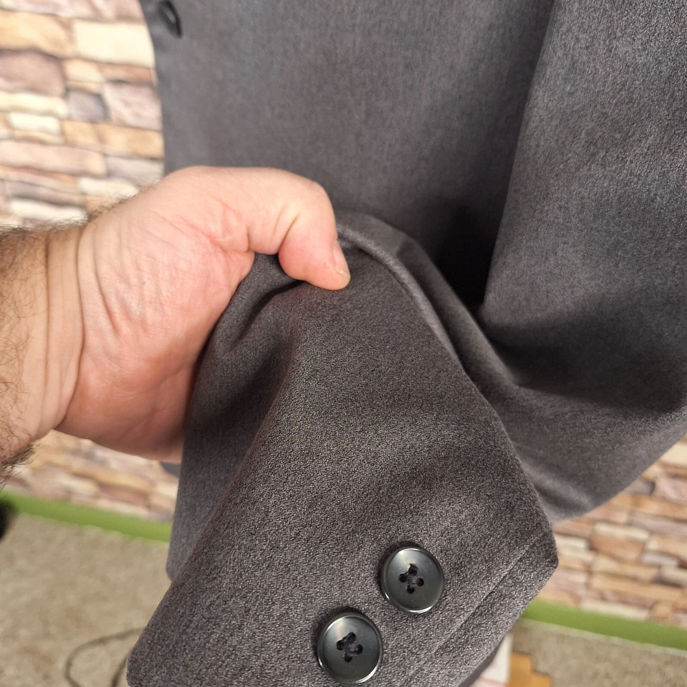 This jacket looks sharp and fits true to size—perfect for business or casual wear. The microfiber polyester feels durable yet comfortable, and the ventless design keeps it sleek. Fast shipping and great condition as described. Measurements were spot-on, so check them carefully. Wrinkles from shipping smoothed out easily. Excellent value for the price! Would buy again.