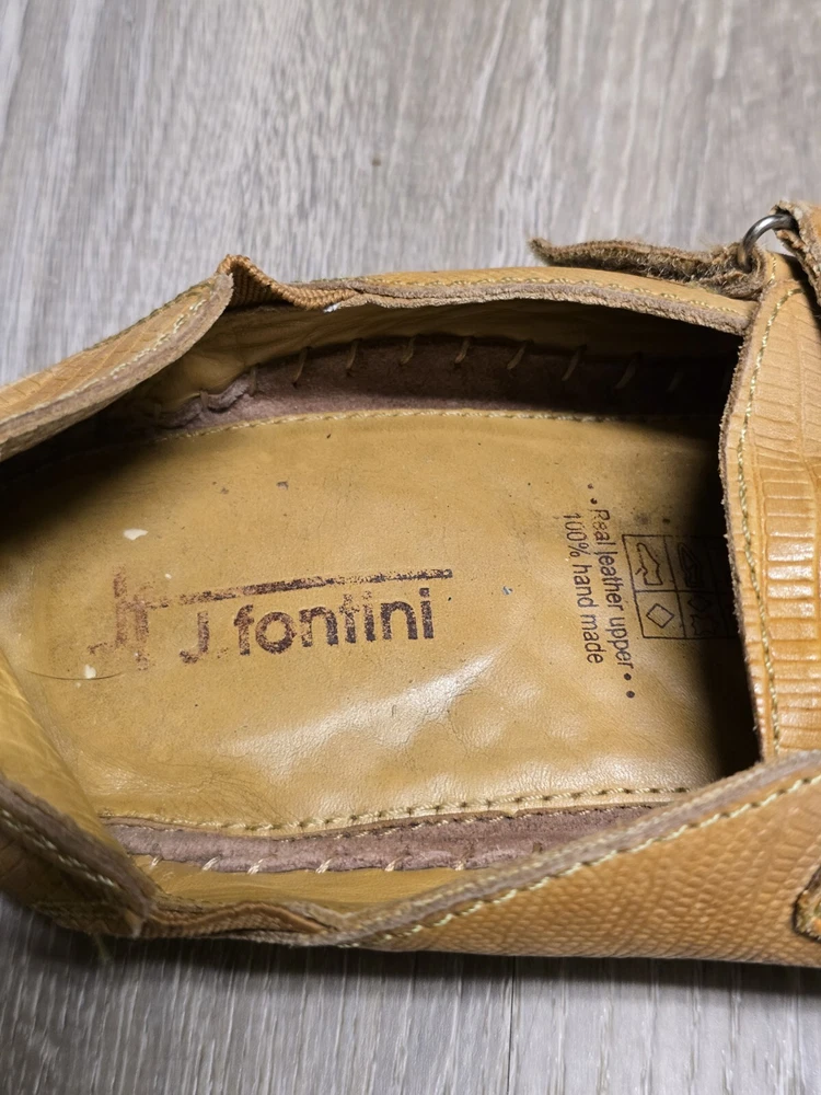 Elevate your style with these J. Fontini Men's Handmade Brown Leather Fisherman Closed Toe Sandals. Crafted with solid pattern and made of high-quality leather, these sandals are perfect for any occasion. The closed-toe design ensures durability and comfort, while the handmade touch adds a unique touch to your outfit. These sandals come in size 9.5 for US shoe size and 43 for EU shoe size. The brown color complements any outfit and the fisherman style adds a touch of sophistication. Perfect for men who want to add a touch of elegance to their wardrobe.